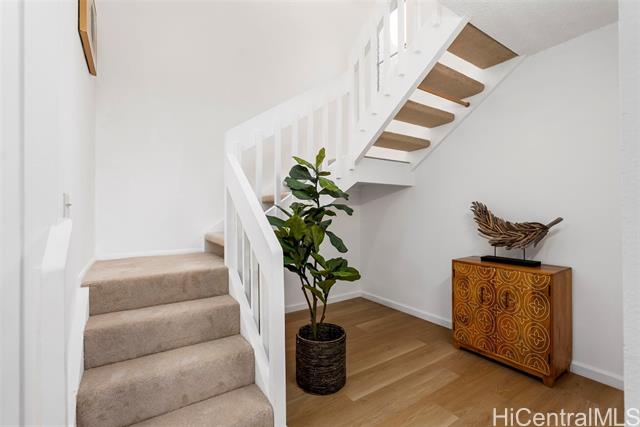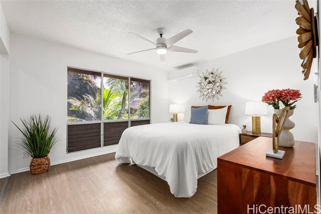 Convenient and Private 3-bedroom, 2.5-bath townhouse offers a quiet and comfortable living space. Recent upgrades include new vinyl flooring, an updated bathroom, and split AC in the living area and primary bedroom for added comfort. The home also includes two assigned parking spaces (1 covered), with additional guest and street parking available. Located in a well-maintained community, residents have access to a private recreation center including a swimming pool, basketball and tennis courts, fitness center, and party room. Just five minutes away, Windward City Shopping Center provides dining options, grocery stores, and everyday essentials. For an easy commute to town or Pearl Harbor, you have convenient access to Pali Highway, Likelike Highway, and H-3 Freeway. Don't miss this move-in ready home in Kaneohe—schedule a showing today! Some photos have been enhanced.