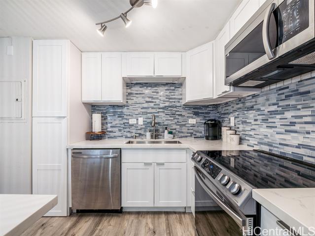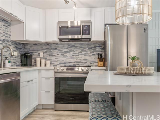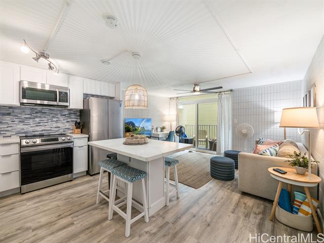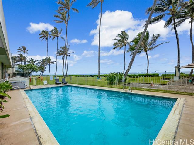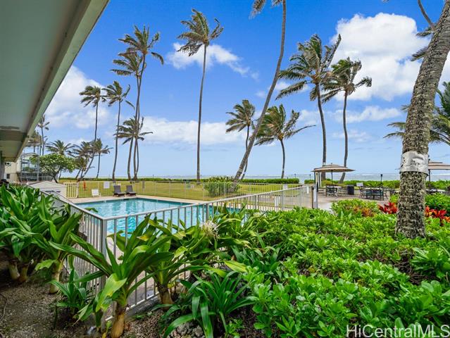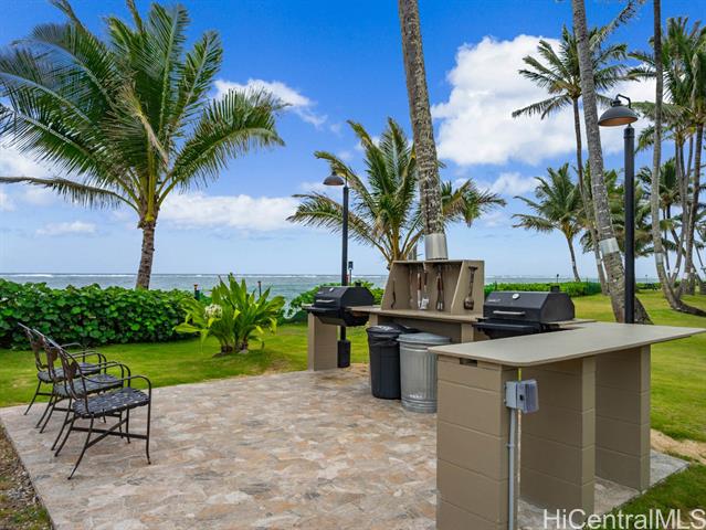 PRICED TO SELL! Own your piece of paradise at this ocean front complex on Oahu's Windward Coast. Fully renovated from floor to ceiling with quartz counters, soft close cabinets, new LVP flooring, fixtures and equipped with a full size dishwasher and interior washer & dryer. The cozy private home can also come fully furnished, you just need to bring a toothbrush! The best part is the sun-soaked tropical location that will ensure a lifestyle balance with; a gym looking over the ocean, beachfront pool, BBQ area to cook your dinner or have friends over, relax or look for shells in the sandy beach front, snorkel & paddle board in your backyard. It's just a short drive to Kahana Bay, a sought after area for camping, fishing, boat launching and more. Plus you have the Crouching Lion Restaurant and bar that recently re-opened and cafe. This secured building recently went through structural and cosmetic upgrades and renovations, has 100% hurricane insurance and is VA approved.