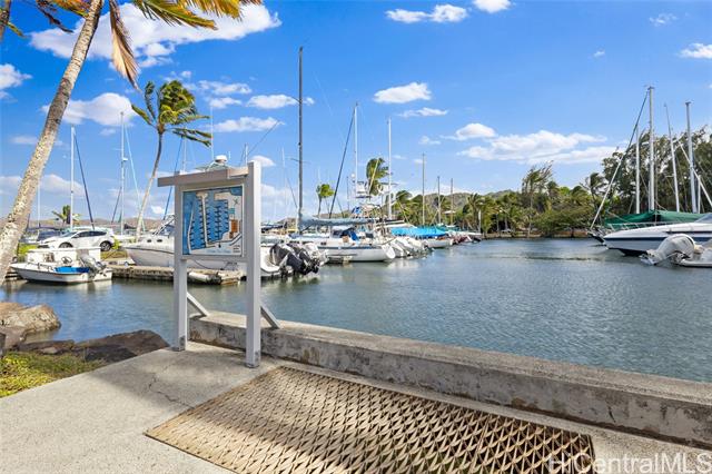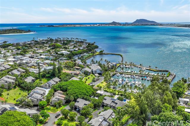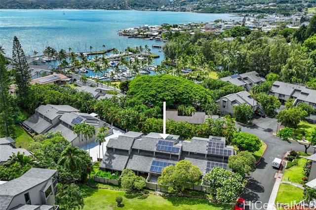 Ahoy all boaters, fisherman and ocean lovers. Don't' miss this opportunity to own a private 34ft. boat slip, along with a beautiful 3 bed/2 bath townhouse, in Makani Kai Yacht Residences Marina - a private and gated boating community where you can moor your boat just steps from your home and access to Kaneohe bay, the Kaneohe sandbar, and the open ocean. The boat slip has the best location in the marina -it's downwind with close access to guest parking and clubhouse for easy loading. It also has water and shore power (approved for installation of a dock box). The slip is located near a freshwater stream which limits the effect of the salt water, reduces the need for bottom cleaning. If you don't have a boat now, slip can be rented approx $750/mo. There's also storage, and easy ocean access, for kayaks and other watercraft. Unit 29 has split ACs in bedrooms and living room. Bright and airy with a modern kitchen. 27 fully owned solar panels. 2 covered parking stalls. Enjoy peaceful marina living, scenic bay views, and the comfort of a well-maintained home. Whether you're setting sail on your boat or soaking in the waterfront serenity, this property offers the best of island living.