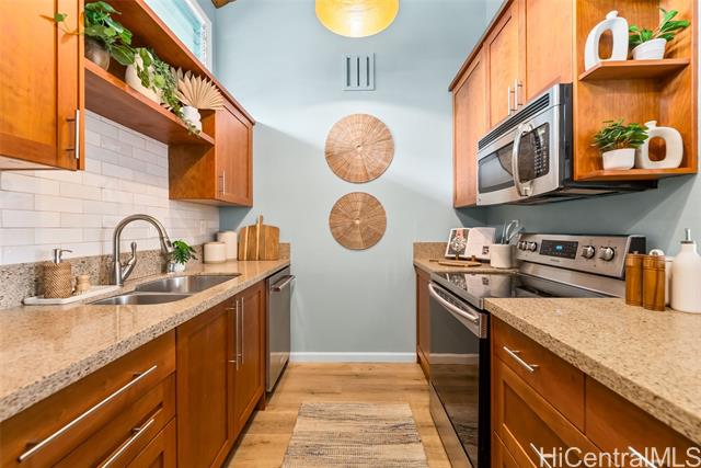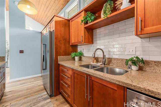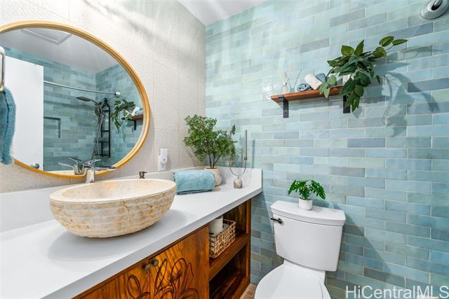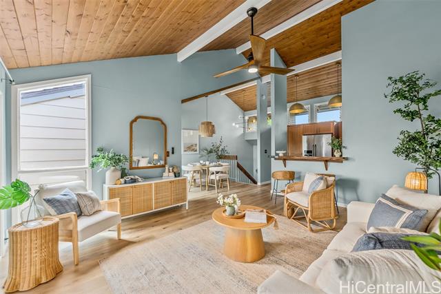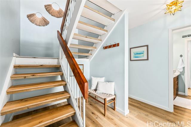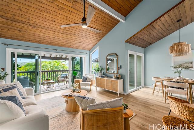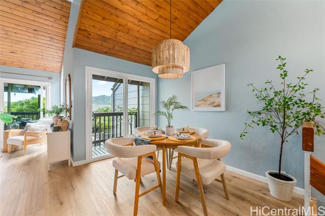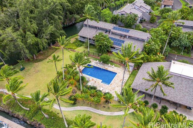 Blending nature and serenity, this 3 bedroom, 2 bath unit with a 38ft deeded boat slip, combines the feel of a tropical oasis with the beauty of the surrounding Ko’olau mountains and grandeur of Kaneohe Bay. Second floor vaulted ceilings with exposed wood beams provides an open flow to one of 4 private lanais where you can enjoy a beverage of choice or relax and meditate to the sounds of nature. Recently updated kitchen with a gorgeous monkeypod bar top will have you excited to create and/or host lavish get togethers with family and friends. Feel transported to a luxurious spa when you step into the recently updated bathrooms. Enclosed, private back yard space which leads to an outdoor grassy area is perfect for fur friends and keiki. Makani Kai Marina is a gated, pet-friendly community sitting on the waterfront of Kaneohe Bay. You’ll have access to the pool, rec room, grilling spaces as well lots of guest parking. Don’t own a boat? Rent out your slip for monthly income! Come see us at out first Open House this Sunday 10/5 from 2p-4p.