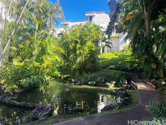 Enjoy pet-friendly living in a lush, well-maintained community just minutes from the Shopping Center and Windward Mall. Resort-style amenities include a pool, tennis courts, hot tub, sauna, BBQ areas, clubhouse, and peaceful walking paths. The kitchen overlooks a serene garden, and the spacious lanai faces a tranquil koi pond surrounded by tropical landscaping. The bedroom offers its own private lanai and courtyard for added privacy. With exterior maintenance covered by the HOA, this home offers comfort, convenience, and an easy indoor-outdoor lifestyle.