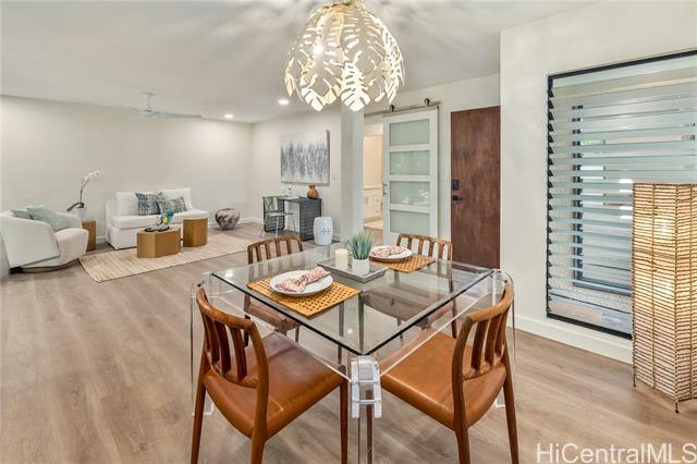 Seller Motivated! This stunning townhouse could be yours! Start your mornings with a cup of coffee on your private, tranquil lanai, where the serene pond views provide the perfect escape from the everyday. Thoughtfully designed by a professional interior designer, this home is bright, stylish, and inviting. Enjoy the convenience of all-new appliances (oven includes an air fryer, oh joy!), making daily living effortless. The modern sliding barn door allows for flexible privacy creating an en suite living area, ensuring peace and quiet when needed. New Luxury vinyl plank flooring adds a contemporary touch throughout the living space, while the Monstera chandelier in the dining area serves as a striking centerpiece. Wake up to the beauty of nature with a landscaped courtyard right off your own private retreat to relax, recharge, or start the day surrounded by freshly planted greenery (dream of enhancing the area with your personal touches and favorite plants)! Every day feels like a vacation, don't miss this opportunity to call this home.