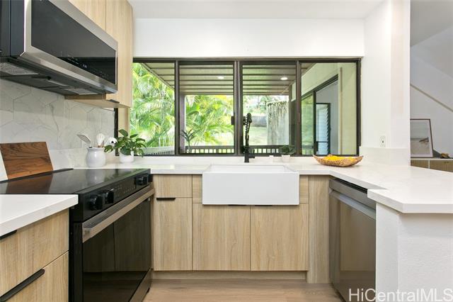 Welcome to Puu Alii - an EXCEPTIONAL community. This beautifully + fully renovated 2-bed, 2-bath townhome offers a modern + stylish living space. Situated in the highly sought-after Puu Alii neighborhood, this WELL-PRICED unit provides convenient walking access to grocery stores, Windward Mall + a variety of dining options. Featuring a spacious open layout + with vaulted ceilings, complete with a walk-in closet and in-unit washer/dryer for added convenience. Enjoy tranquil views of the koi pond from your private lanai, perfect for relaxation and unwinding. Your side-by-side parking spaces ensure ease of access + ample guest parking for your friends + family to visit. Offering resort-style amenities + granting access to ALL Puu Alii phases + Poha Kea Point, you can indulge in 3 separate pools, hot tubs, rec areas, sauna, tennis + pickleball courts, multiple jogging paths, BBQ areas + much more on the well-managed grounds. With easy access to H-3, Likelike + Pali highways, explore the vibrant surroundings of Kaneohe + take a short drive to world-renowned beaches in Kailua. Don't miss the opportunity to own a piece of paradise in this well-maintained + highly desired community.