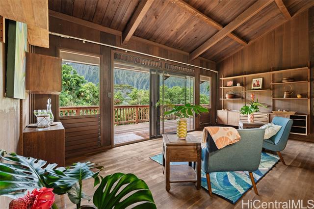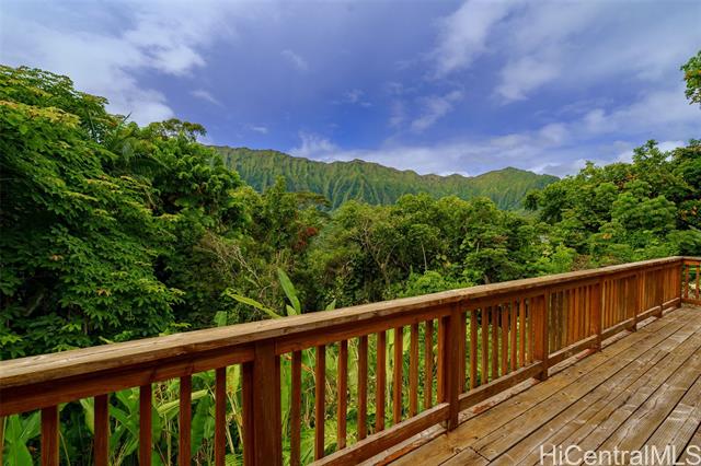 Nestled in the picturesque community of Kahalu'u near Temple Valley and Ahuimanu with stunning views of the Ko'olau Mountain Range this expansive multi-family property offers a unique opportunity for versatile living arrangements. Two homes on 1.8 acres of residential property with 3.1 acres zoned preservation. Each home contains 3 bedrooms and 2 baths, and a rec. room above the carport with kitchenette and bath enabling opportunities for private guest quarters, multi-generational living or rental. Set against the backdrop of lush Hawaiian mountains, the property invites you to experience the serene ambiance of country island life. Its ample land offers potential for gardening enthusiasts, agriculture or those dreaming of custom outdoor spaces with tranquil lifestyle and privacy- imagine creating your own tropical oasis. There are outbuildings and a space where an orchid nursery once operated. The verdant landscape of ti, ginger, bromeliads, monstera, heliconia, lychee, avocado and mango embody the essence of old Hawaii, yet only 2.1 miles to Ko'olau Center and 4.5 miles to Windward Mall.