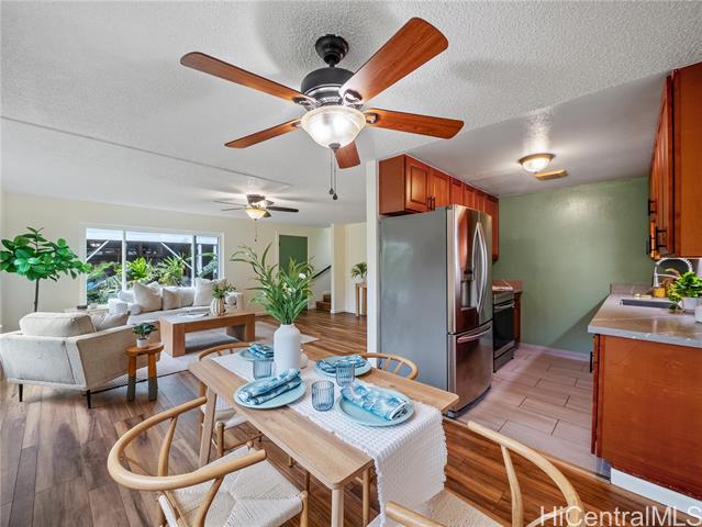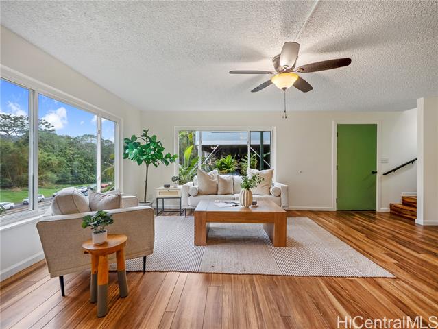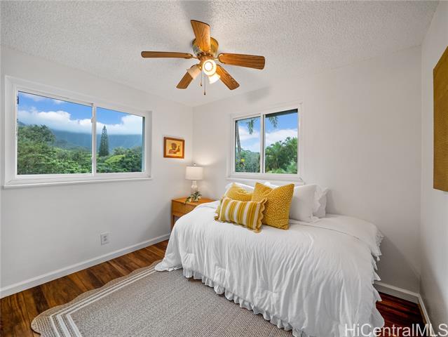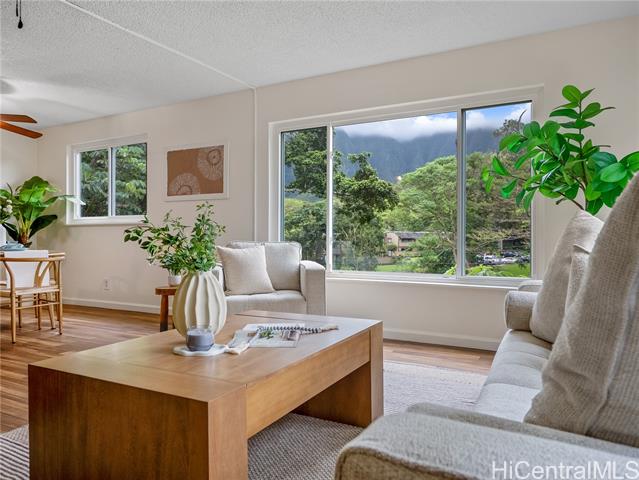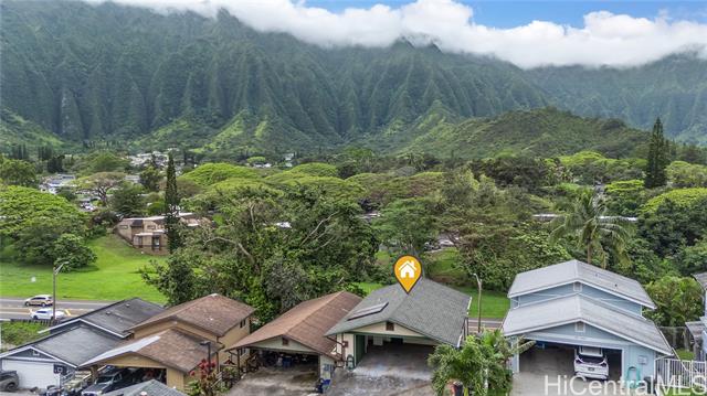 Welcome to this move-in ready 3 bed/2.5 bath home nestled on a private dead-end road in Kaneohe, set against the breathtaking backdrop of the Koolau mountain range. Perfectly positioned for easy access to Kaneohe town, Kailua, and a straight shot up Kamehameha Highway to the North Shore. Walking distance to Koolau Shopping Center and just minutes from dining, shopping, and everyday conveniences. Recent updates include fresh interior paint and new flooring, plus a kitchen featuring new cabinets, quartz countertops, stainless steel appliances, extractor fans, and a disposal. Additional highlights include a solar water heater, luxury vinyl plank flooring throughout, a 6-year-old roof, and a large carport with storage. Priced to deliver exceptional value for Kaneohe single family homes.