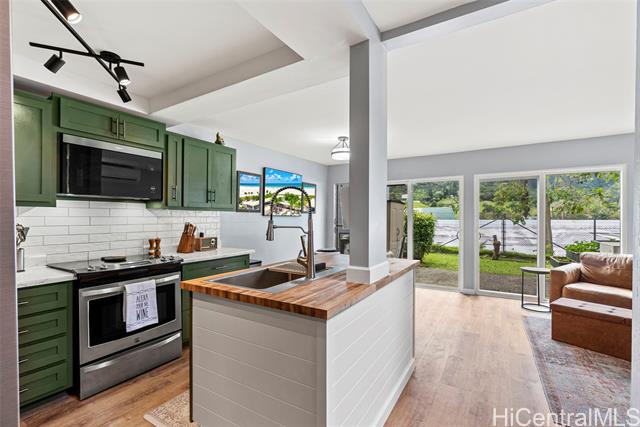 Set in the desirable Hokuloa community within the peaceful Temple Valley of Kaneohe, this charming 2-bedroom, 1.5-bath end unit townhome offers STUNNING VIEWS of the iconic Ko’olau mountains. The home has a beautifully updated kitchen and fresh new downstairs flooring. The inviting open floor plan enhances the comfortable living and dining areas, which overlook a private courtyard—a tranquil space for outdoor relaxation and gardening. The home also features a large den with ample storage space and a deep walk in closet in the primary bedroom. Includes a secure 2-car garage and nearby guest stalls providing generous parking and additional storage. Residents of Hokuloa enjoy an array of amenities, including a community pool, tennis and basketball courts, playgrounds, and more. Ideally located just seconds from the Koolau Shopping Center and Windward Mall. this home blends comfort, convenience, and an exceptional setting.
