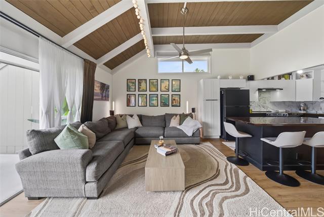 **RENOVATIONS AND VIEWS** This charming Kaneohe single-level 3-bedroom, 2-bath townhome in the highly desirable Club View Gardens 2 community offers comfortable island living in the sought-after Ahuimanu neighborhood. Not many homes in the community are positioned without neighbors through the walls and with such tranquil views off of the large outdoor space. Did we mention single level for that ease of access and continuous flow of living spaces. As you enter the home, you'll find a well updated kitchen perfect for everyday living and entertaining. Enjoy the upgraded split AC's in the living & primary + dual pane sliding vinyl windows throughout the home. Vaulted ceilings make for a spacious and luxurious feel. The primary suite provides a private retreat with access to the lanai, while two additional bedrooms offer flexibility for guests & access to the fenced in grassy front yard for the pets. Step outside to your own MASSIVE lanai and enjoy sunlit green mountains or mystic morning Ko'olau vibes. Located close to Windward Mall, dining, beautiful Windward beaches & easy access to town. **THIS ONE WILL NOT LAST LONG** Open House Sunday 5/3 2-5pm.