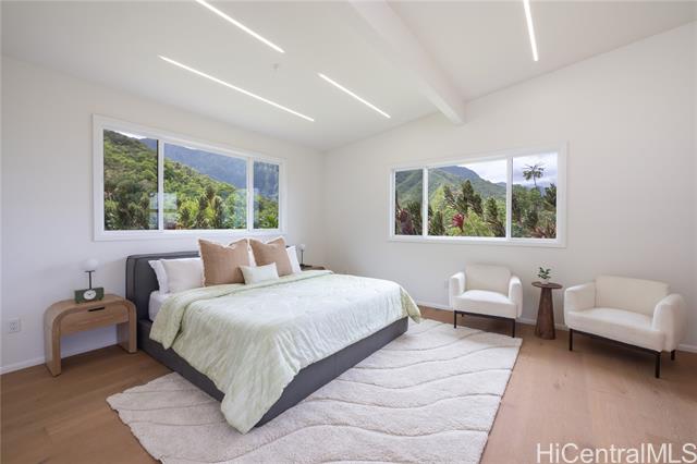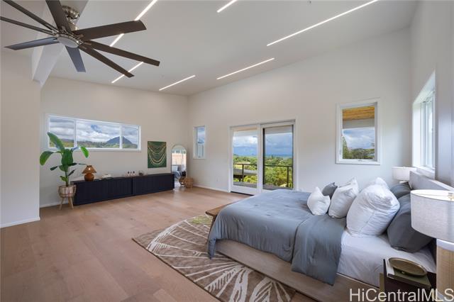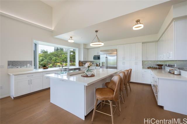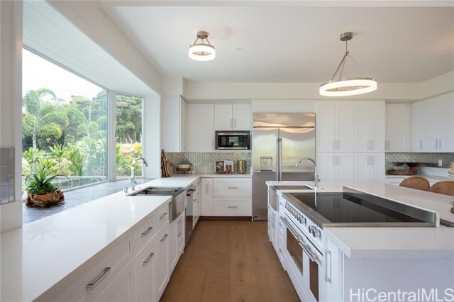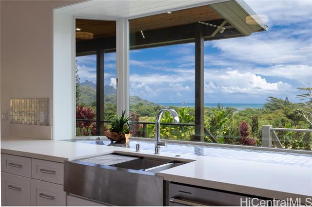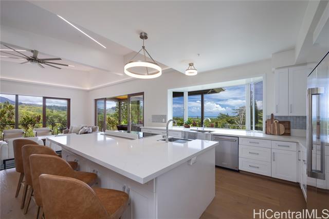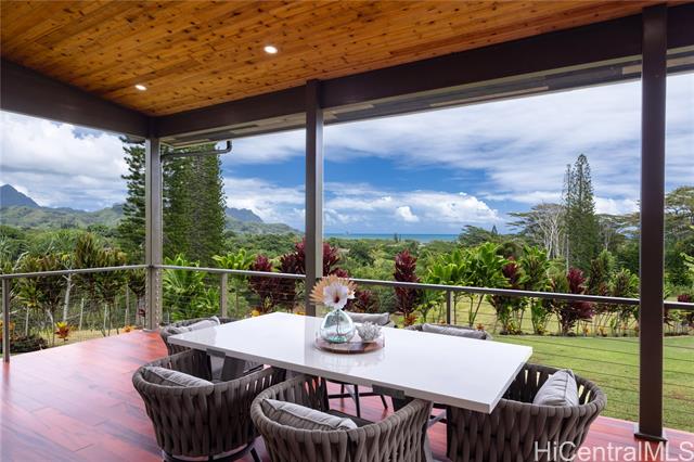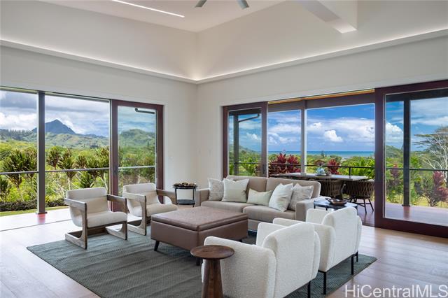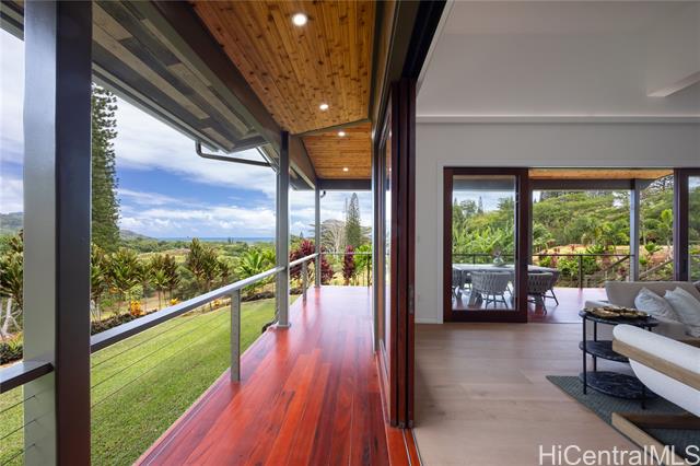Prominently situated at the base of the Ko‘olau Mountain, a newly built Luxury Country Estate is a rare opportunity for a discerning Buyer seeking views, land, location, & privacy. Spanning over 4 acres above a neighborhood of Cacao Farming, this private Retreat offers breathtaking panoramic views of the ocean, and lush mountain cliffs. A thoughtfully designed residence showcasing soaring ceilings, mahogany framed glass doors from floor to ceiling for seamless indoor-outdoor living. Custom finishes include monkeypod stair treads, tigerwood lanais, custom LED recessed lighting (converts to 12 volts), and 8’ doors throughout. The Chef’s kitchen features 2 sinks, an oversized island - perfect gathering area for the Holidays or entertaining, a 6-burner range/2 ovens with pop-up hood. Primary suites, 1 on each level, offer spa-inspired bathrooms, walk-in closets and a private balcony upstairs. SUSTAINABILITY meets SOPHISTICATION. Owned PV system, tropical landscaping & gated driveway entry. BONUS unattached 900sf workshop. Tucked away for serenity yet minutes from conveniences, this is Hawai‘i living at its finest. Conveyed w/TMK 1-4-7-5-41-1/MLS #202519988.
