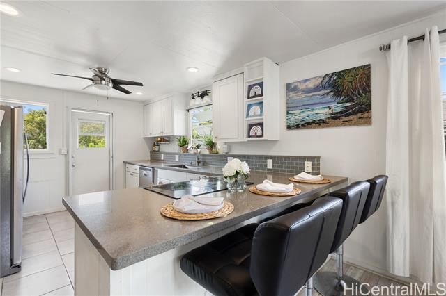 Discover the beauty of island living in this move-in ready single-family home, perfectly situated in Kaneohe with direct water access that will lead you to the Kaneohe Sandbar. This rare location offers the ultimate lifestyle for ocean lovers, where jet-ski's, paddling, and breathtaking views are just steps from your door. Inside, you’ll find a beautifully updated kitchen with modern finishes, perfect for both everyday living and entertaining. The home’s open and inviting layout provides seamless flow, while large windows bring in natural light and showcase the surrounding tropical beauty.
