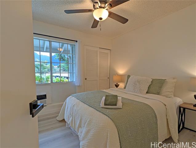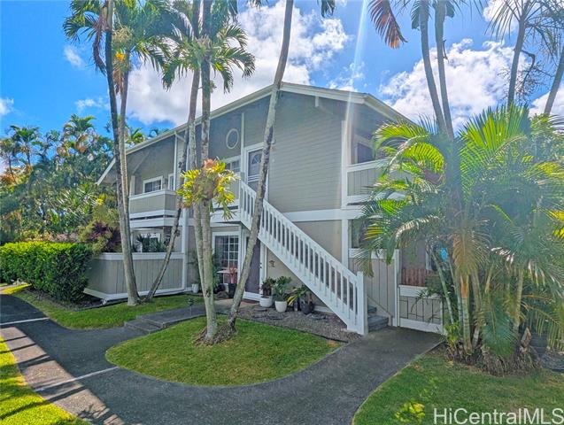 WELCOME HOME to this charming second-floor townhome, where a private balcony frames stunning Ko‘olau Mountain views and creates the perfect backdrop for morning coffee or peaceful sunset at the end of a day. Inside, the inviting layout blends comfort and style, enhanced by thoughtful updates including new flooring, fresh paint, modern ceiling fans and lighting, and a beautifully refreshed kitchen with new appliances. A dishwasher, and a full size washer and dryer add everyday ease, while window A/C units in each room keep the space cool and comfortable year-round. Nestled in a well-maintained community with convenient access to Windward Mall, grocery shopping, dining, movies, parks, and major routes like Likelike Highway and the H-3, this home offers the ideal retreat to experience Hawai‘i living at its finest. First Open House: Sunday, December 7th from 2pm–5pm.