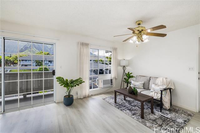 Discover island living at its finest in this charming 2-bedroom, 1-bath condo located in the peaceful Haiku Point 2 community. This upper-level unit features a bright and open layout, a private lanai perfect for enjoying morning coffee or a glass of choice in the evening and an in-unit washer/dryer for added convenience. One assigned and covered parking stall is included. Guest parking is available. Newly painted and new flooring. Nestled beneath the breathtaking Ko?olau mountain range, this home offers dramatic views of lush green cliffs and misty peaks that create a serene and picturesque backdrop and your lanai faces it! The natural beauty surrounding the property is unmatched, offering a tranquil lifestyle just minutes from urban conveniences. Enjoy close proximity to Windward Mall, local eateries, schools, and freeway access for easy commuting. Outdoor enthusiasts will love being near Ho‘omaluhia Botanical Garden, Kaneohe Bay, and scenic hiking trails. The community is quiet, well-maintained, and ideal for first-time buyers, downsizers, or investors seeking a peaceful Windward lifestyle. Come and see it! First open house is on Sunday, 9/28, 2 to 5 pm.