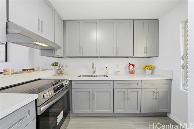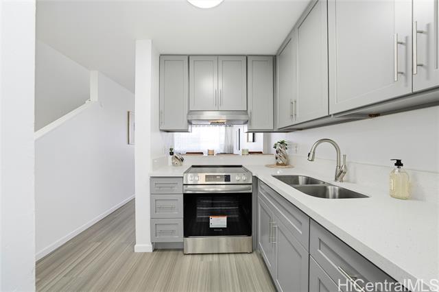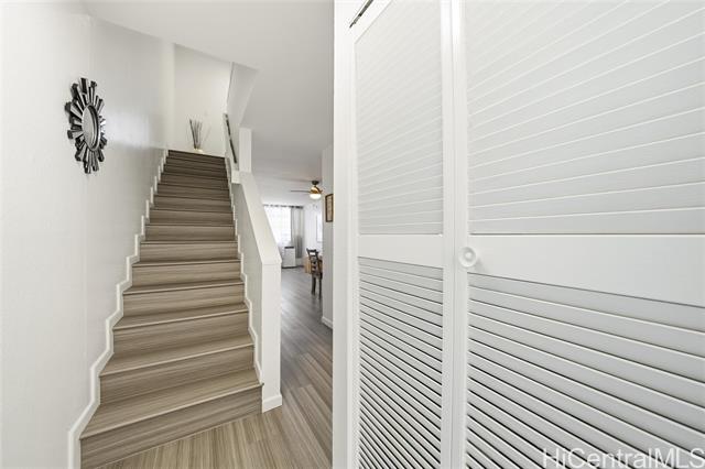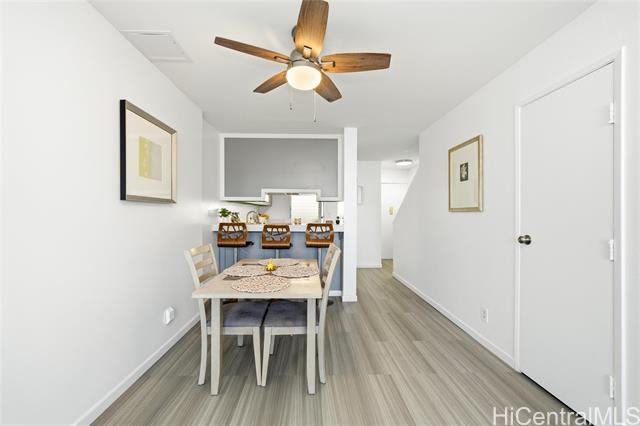 Freshly remodeled and ready for you to call home! Priced well below tax-assessed value, this ideally located home is just minutes from shopping, dining, entertainment, banking, movie theaters, recreational areas, Windward Mall, Kaneohe Bay, and Marine Corps Base Hawaii. Set against a beautiful mountain backdrop, the residence showcases tasteful upgrades throughout, including luxury vinyl plank flooring, quartz countertops, new stainless steel appliances, and air-conditioning for year-round comfort. Large windows fill the home with natural light and refreshing trade winds. Ample closet space and a spacious under-stair storage area add everyday functionality. Residents also enjoy well-maintained grounds, a recently renovated pool, a recreation room, and a convenient car wash area. Pet friendly policy welcomes your furry friends (verify).