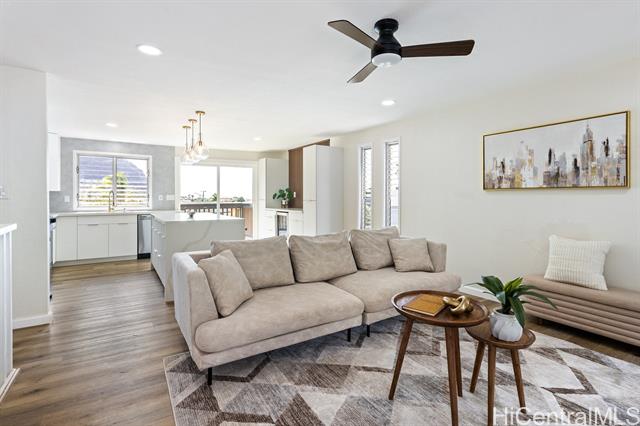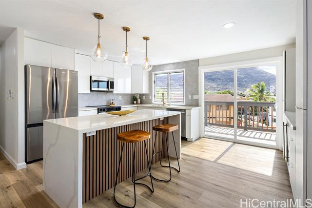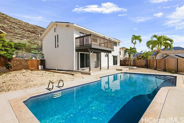 Newly renovated and move-in ready, this spacious 5-bedroom, 3-full-bath home in Lualualei Valley offers an ideal layout for multi-generational living. The home features a bonus room with a wet bar, providing flexible space for extended family, guests, or entertaining. Enjoy indoor-outdoor island living with a private swimming pool, perfect for gatherings and relaxation, along with the convenience of a two-car garage and generous living areas throughout. Conveniently located near schools, Waianae Mall, and beautiful Waianae beaches, this property combines space, comfort, and location—an excellent opportunity to own a move-in-ready ohana home in Waianae.