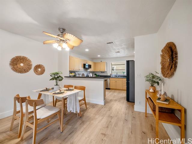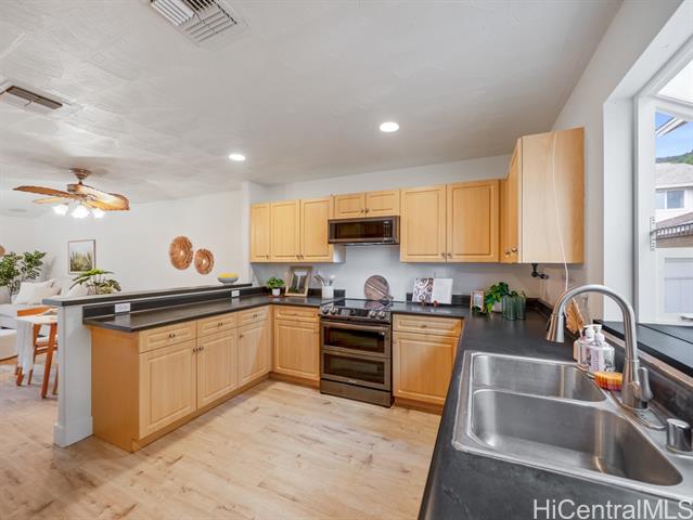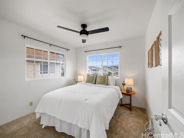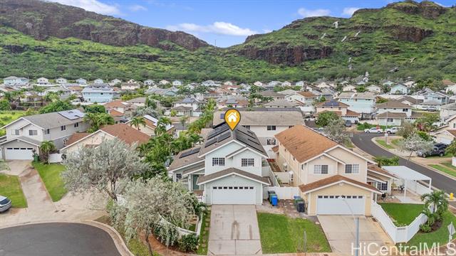 Welcome to Sea Country, where this bright and move in ready 3 bedroom, 2 bath single family home offers the perfect blend of comfort, efficiency, and convenience. Tucked on a quiet cul de sac, this freshly painted two story home features updated flooring, new stainless steel appliances, modern kitchen and baths, and a spacious open concept living area that flows to a private, low maintenance yard with luscious landscaping and a built in sprinkler system. Enjoy mountain and sunset views from your lanai along with the benefit of 22 leased solar panels and 2 Tesla batteries to help offset electricity costs and provide added peace of mind. A 2 car garage offers ample storage, and you are just minutes from Maili Beach Park, nearby hiking trails, and Sea Country’s shops and community park. With low HOA fees, a pet friendly neighborhood, and a strong sense of community, this home captures the best of West Oahu living.
