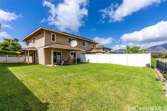 LOW HOA FEE UNDER $100!!! Welcome to your future home, this beautiful, move-in ready property boasts 4 bedrooms and 2.5 bathrooms in the heart of Sea Country, offering generous space and a HUGE fenced in BACKYARD perfect for your pets. Attached 2-car garage, under-stair storage and attic space, making storage concerns are a thing of the past. SOLAR panels along with storage BATTERIES will help offset the high HECO bills for the area. Close proximity to amenities, the beach, community pool, dog park and MORE! Envision starting your day with the peaceful unobstructed sight of mountains illuminated by the morning sun, offering a serene retreat from the daily grind on O'ahu. It's an ideal setting for nature enthusiasts and anyone seeking a calm haven. Schedule a private showing today!
