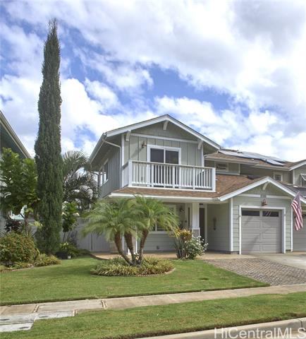 Price Reduced! Beautiful and immaculate home in desirable Nohokai in Sea Country! Wonderful upgrades throughout including a spectacular kitchen with 42" upper cabinetry, premium appliances, granite countertops, tile backsplash. Elegant crown molding, baseboards and door casements throughout the home. The bathrooms are updated with tile and granite and off the living area is a breezy screened in lanai with coffee/bar area and wine/beverage refrigerator. Great backyard with a variety of tropical plants and a rooftop deck with fabulous views of the mountains, valley and toward the ocean. And, an outdoor shower to rinse off after those days at the beach! A terrific layout with spacious rooms, an extended dining room and arched doorways that add to the beauty and comfort of the home. Additional built-in cabinetry in living area for TV and extra storage. Downstairs bedroom and full bath are perfect for extended family or guests. Upstairs, there is wood flooring and the primary bedroom has a lanai and a beautiful, roomy bath with double sinks. ASSOCIATION FEE ONLY $77/MO. The community pool, dog park and beaches are nearby and Ko Olina is a 15 minute drive. This is a must see home!