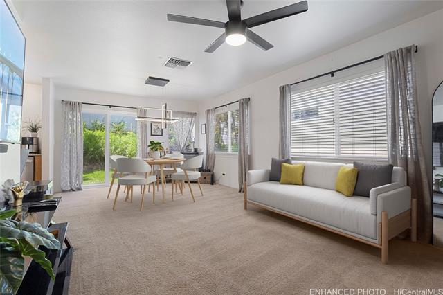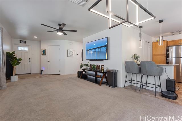 The peaceful oasis of your dreams is waiting for you in Ma'ili Sea Country! This open concept 3 bed, 2.5 bath home offers a comfortable, inviting space to spend time relaxing or entertaining guests, with cool central AC and lots of natural light. Over the hustle & bustle of town? Wake up in your spacious primary bedroom to birds chirping rather than traffic noise. Harvest some bananas from the tropical garden in the front yard, or play with your fur babies in the fenced-in back yard. Enjoy low electricity bills with owned solar with a transferable loan, installed in 2023. The 2 car garage, driveway space for up to 4 cars and a storage shed in the back yard ensure you'll have all the space you'll need.