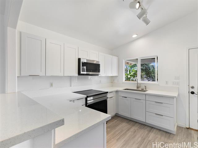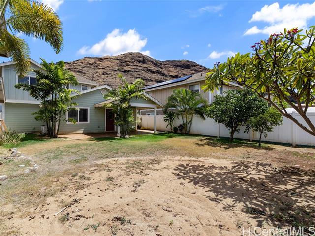 Experience island living at its finest in this beautifully upgraded 3-bedroom, 3-bath home nestled in the highly desirable Palekai neighborhood of Sea Country. Thoughtfully enhanced with luxury vinyl flooring throughout, this home features a fully remodeled kitchen with new countertops, cabinetry, and appliances—all completed within the past year. An upgraded vanity adds a touch of elegance to the primary bedroom suite, while the convenience of one bedroom and a full bath on the first floor offers flexible living options. Leased solar panels help keep energy costs low, and the expansive, fenced-in backyard is perfect for outdoor entertaining. Just minutes from the beach and the famous Maili Pillbox Hike, this home also includes access to a community pool with no maintenance fee—blending comfort, sustainability, and the coastal lifestyle you’ve been looking for.