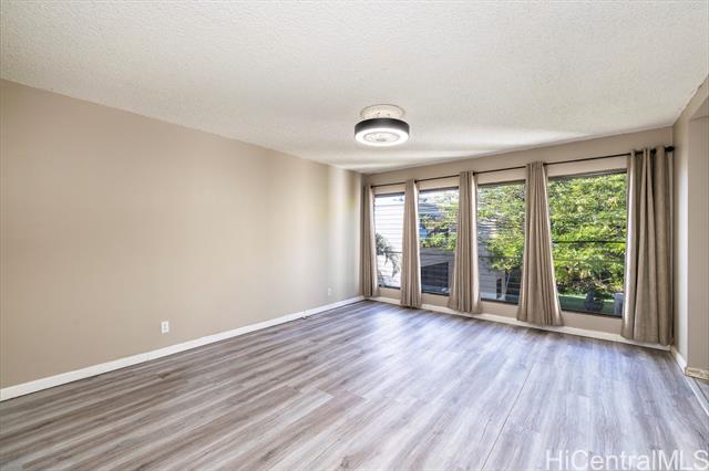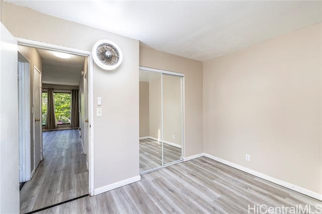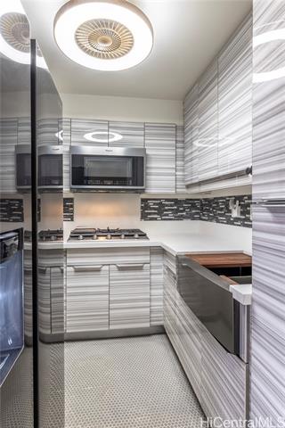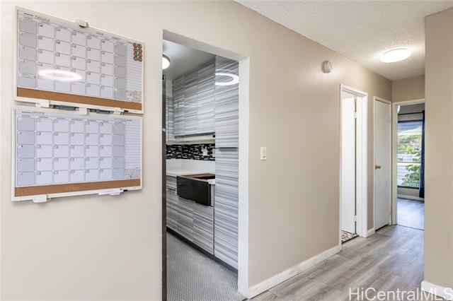 Where else, on Oahu, can you find a home this upgraded, minutes from the beach, at this price, with TWO parking stalls? Extensive upgrades include beautiful acrylic cabinets, quartz counters, a 5 gas burner stove, solid plank & tile flooring and modern lights enhousing fans. Home is conveniently across from the shared laundry room featuring machines installed in 2025. Move quickly on this opportunity to become a homeowner in paradise. This is 808Living! Walk up building, no elevators helps eliminate at least one factor affecting maintenance fees.