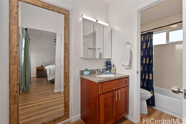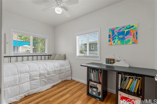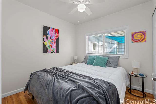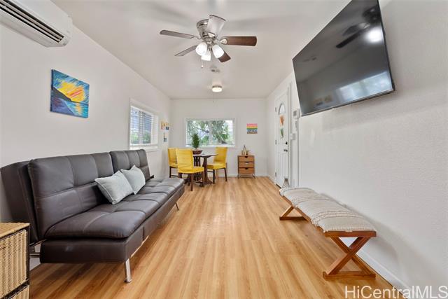 Discover this beautifully RENOVATED SINGLE-LEVEL HOME on a LEVEL CORNER LOT just minutes from the beach! Enjoy cool breezes and a FLEXIBLE LAYOUT ideal for multigenerational living or live-rent possibilities. The main kitchen and living room are surrounded by three bedrooms and one bath on one side, while a second living room anchors the opposite wing with three additional bedrooms and two baths. One of the bedrooms has its own bathroom and a separate entrance. This property offers a comfortable and efficient floor plan that maximizes usable space. Features include split A/C units, island-style shutters and blinds, multiple covered lanais, abundant storage, and an enclosed yard perfect for privacy and indoor-outdoor living. A rare combination of location, versatility, and upgrades—come see how this home can fit your lifestyle and make it yours today! (Assumable 2.625% VA loan for qualified buyers.)