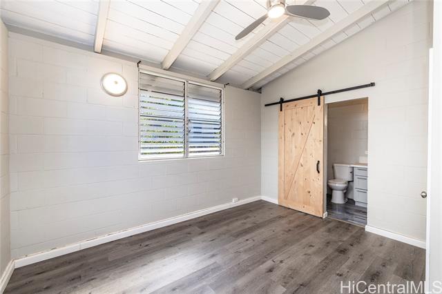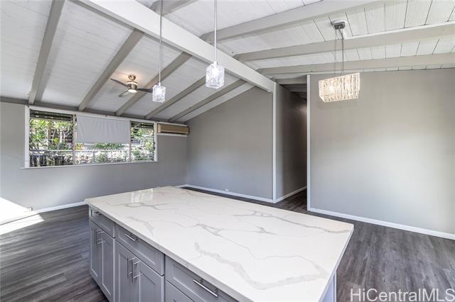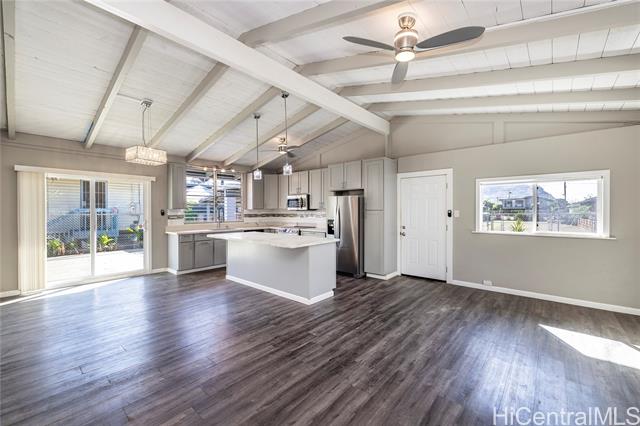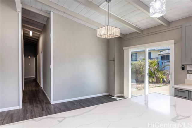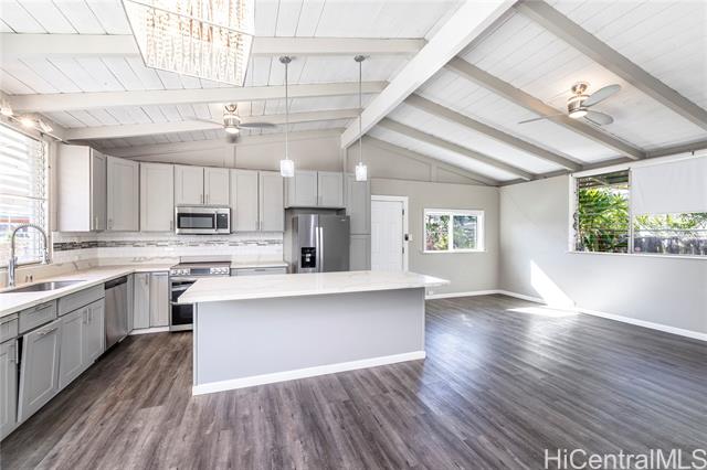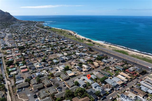 Excellent condition 5bd 2 ba. Well maintained luxury waterproof vinyl planks, carpet in bedrooms, ceramic tiles in bathrooms, easy maintenance Quartz countertops, Adjacent sliding door to an outside open patio area of 399 sf, plus covered patio 56 sf, well groomed landscape plantings, fruit trees, and new sprinkler system. # of bedrooms differs from Public Records. Property is on a nicely manicured cul de sac with a little mountain view for flavor and sits a half block to beautiful Maili Beach Park. Solar lease transfers with the property approximately $190/mo. Don't miss out on this hidden GEM.