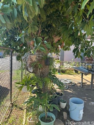 Price Reduction! Single-level home featuring classic island charm with generous covered front lanai, perfect for family gatherings. Freshly painted exterior and interior upgraded light fixtures. This 3-bedroom, 1 bath offers a spacious layout with landscape yard offering mature fruit trees, providing privacy and cooling shade. This property is a great opportunity for families and creating lasting memories. Walking distance to the beach, school and bus stop. Close to shopping mall and restaurants.