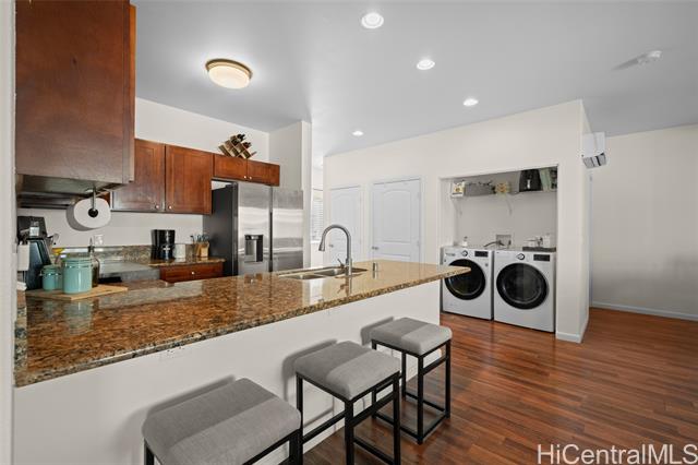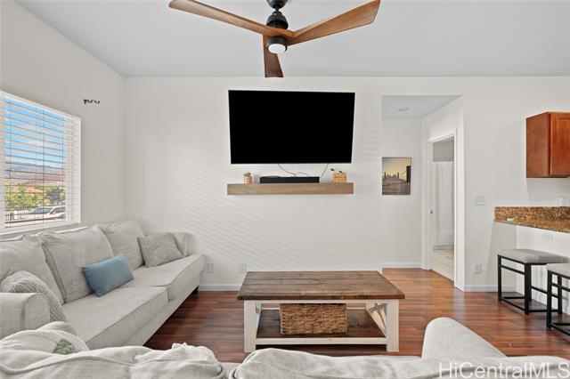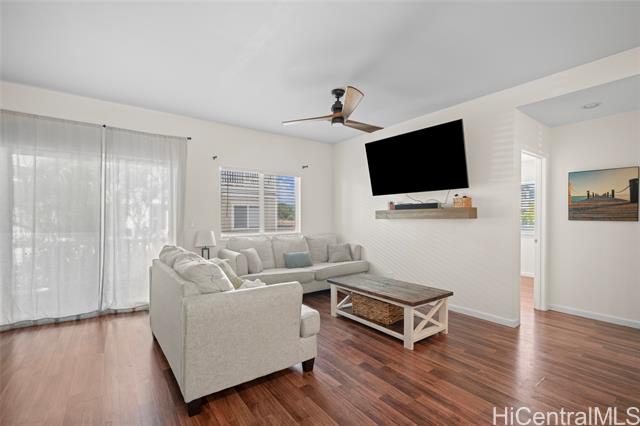 Welcome to this spacious and modern townhome in the highly sought-after Maili Beach Place community. Offering 4 bedrooms and 3 full bathrooms across approx. 1,500 sq ft of living space, this end-unit home features two assigned parking stalls, split A/C units, high ceilings, and great natural light. The open floor plan includes tile and laminate flooring, stainless steel appliances, granite countertops, and abundant storage throughout. A convenient bedroom and full bathroom on the main level provide flexibility for guests or multi-generational living. Upstairs, the primary suite features its own private lanai for relaxing or extra outdoor space, while a second lanai extends from the family room downstairs to create a smooth indoor/outdoor flow. This well-maintained community offers a pool, BBQ area, and close proximity to beautiful beaches, hiking, and the conveniences of Kapolei. Move-in ready and waiting for its next owner—don’t miss this opportunity!