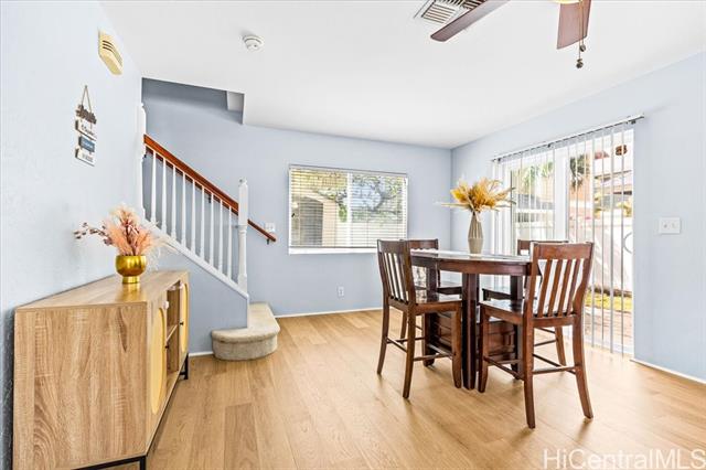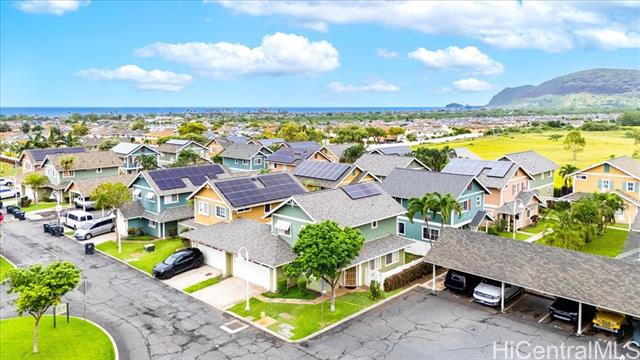 Corner unit 2.7% VA ASSUMABLE RATE with a low gap!!! Stay cool with central AC and 11 leased PV panels and 2 Tesla Batteries designed to help keep electricity costs down, plus brand new luxury vinyl plank flooring on the ground floor. A short drive to Kapolei’s shopping and dining, including Target, Costco, and a variety of restaurants! This 3-bedroom, 2-bath attached home offers a practical two-story layout with the main level featuring an open living, dining, and kitchen area that connects directly to the yard creating an easy indoor-outdoor flow that’s great for relaxing or hosting. The primary bedroom boasts vaulted ceilings with natural lighting and an ensuite bathroom with a double sink vanity. Situated in the Sea Country community, residents enjoy access to amenities including a pool, basketball court, and a park with a large grassy field. Convenient access to schools, the highway, and beautiful westside beaches. * FIRST OPEN HOUSE SUNDAY 3/29 1-3 pm. *