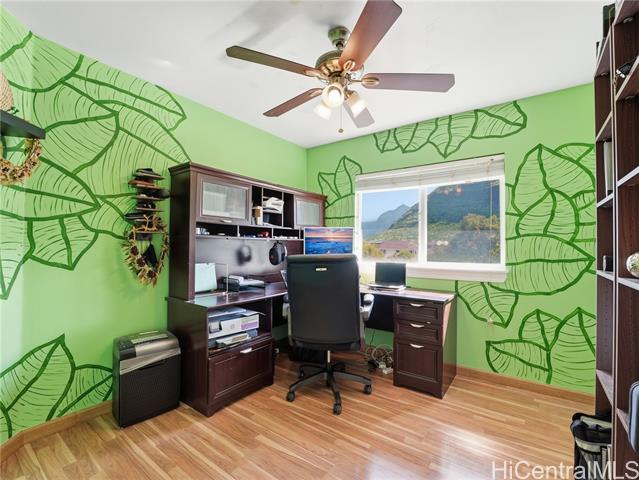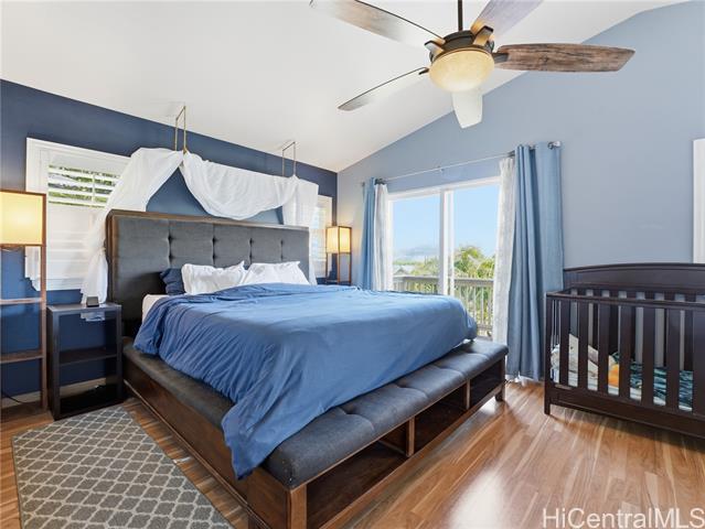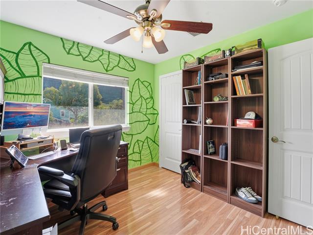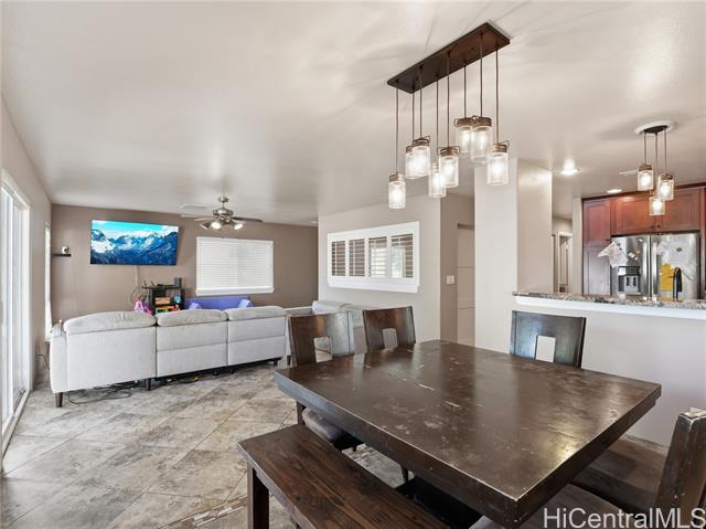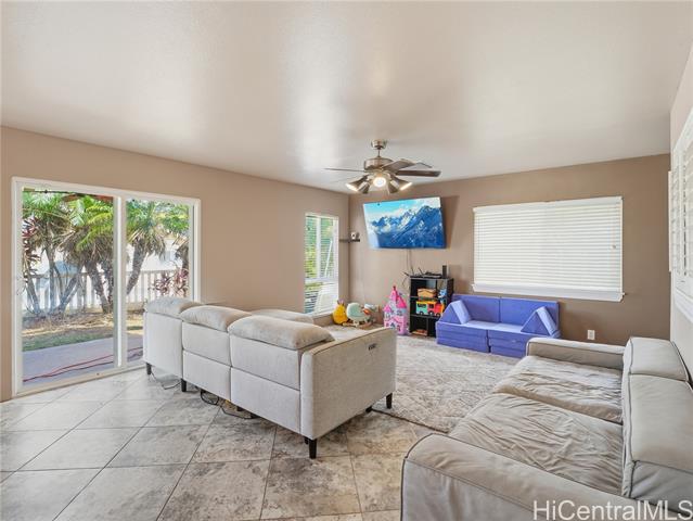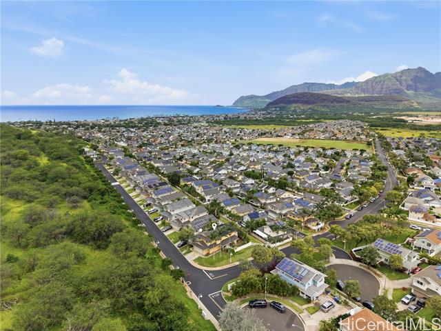 Beautifully upgraded home on a quiet street with cool island breezes await you in this very spacious 3 bedroom 2.5 bath home in desirable Wailana at Sea Country, Maili. With over 1,800 sqft plus a covered lanai with outdoor fans, this corner lot home makes entertaining family and friends a pleasant and easy going experience. Custom tile, travertine and wood laminate throughout the home makes cleaning and upkeep a breeze. Expansive mountain and ocean views from primary bedroom lanai brings a calming feel into the home.