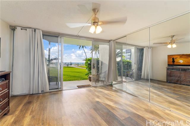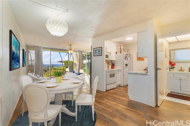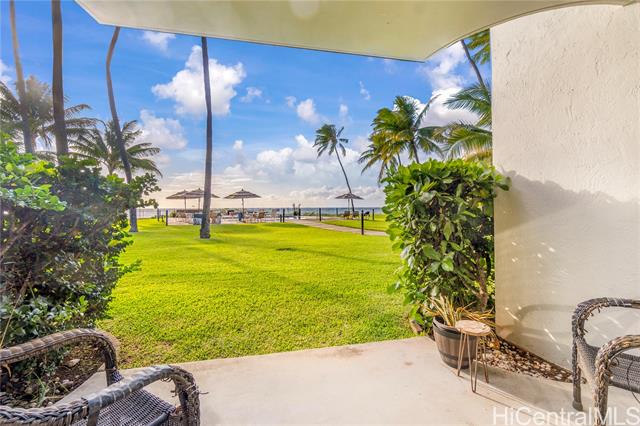Welcome to Ma‘ili Cove, a hidden gem on Oahu’s sun-kissed West Side! This ground-floor, fee-simple 1 bed/1 bath condo lets you slide open the glass doors & step straight onto a palm-dotted lawn that flows to the ocean-view pool, gas BBQs, and miles of sandy shoreline. Inside, an upgraded kitchen with expanded cabinetry maximizes storage, while durable luxury-vinyl plank flooring throughout stands up to salty breezes and post-beach toes. Partially updated bathroom and generous space in the walk-in cedar walled closet. One parking that sits close to your front door, with ample guest parking for visitors. Pet-friendly building with surfboard storage! Ma‘ili Cove’s puts you minutes from the famed Pink Pillbox hike, Makaha surf breaks, Ko Olina golf & lagoons, Kapolei shopping/dining, & Farmers Market on Saturdays at the Waianae Mall. Watch sunsets (+ Dec–May whale spouts) from your lanai, then fall asleep to the sound of the waves. Whether you’re seeking a carefree primary home or lock-and-leave getaway, Unit 109 delivers effortless beachfront living—no stairs, no elevator, no compromise. Seller Offering to pay HOA thru the end of year 2026* One or more photos have been enhanced.