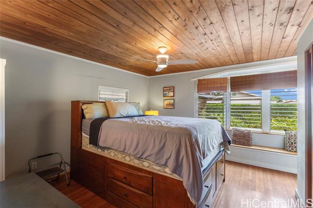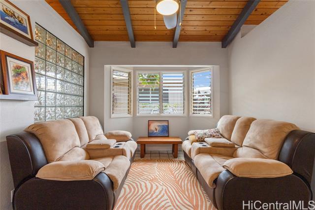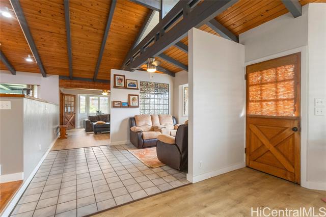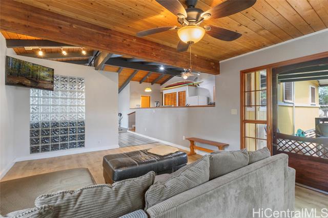 Discover this exceptional four-bedroom, three bathroom home on a quiet dead-end street in Maili. Recently refurbished, this 1,832 sqft residence features durable construction and an open concept living space. Exposed beam ceilings create a sense of spaciousness and architectural charm. The primary bedroom offers a private retreat, while three additional bedrooms provide flexibility for family and guests. There's also a dedicated office area for remote work or creative pursuits. The back patio is perfect for morning coffee or sunset relaxation, with gentle trade winds keeping things comfortable year-round. You're minutes from Maili Point Beach Park where ocean adventures await. Move in and enjoy island living right away! Quality construction, recent renovations and a welcoming atmosphere are waiting. This is more than a house; It is a place where memories are made.