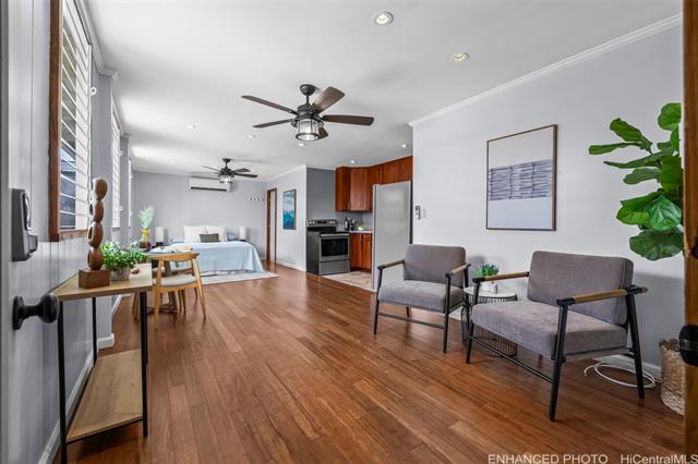 Welcome to this charming 3-bedroom, 1-bath home with attached 420sqft guest suite (studio/1bath) in the heart of Ma'ili, where island living meets everyday comfort. Thoughtfully maintained with many upgrades, this residence features an open and airy layout filled with natural light and split system A/C throughout the home. Step outside to a fully fenced property with automatic rolling gate to enter a spacious covered carport with enough space to park 4 pick-up trucks. The large lawn and yard is perfect for entertaining, gardening, and relaxing. Behind the main home lies a versatile 400 sq. ft. detached flex space with air conditioning, ideal for a home gym, and office. Recent improvements include AC, photovoltaic panels (2020), and a carport & storage built in 2022. Conveniently located 2 blocks from Nani Kai Beach Park, and the Pu'u O Hulu hiking trail, this home offers both adventure and tranquility. Make this peaceful island retreat on Oahu’s Leeward Coast your next home.