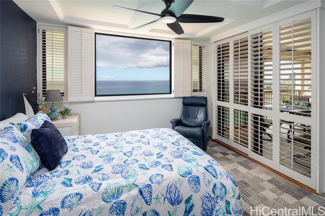 Stunning 2-bedroom, 2-bath ocean-view condo at Hawaiian Princess! Located on the 16th floor, this comfortably updated leasehold residence offers 1,224 sq. ft. of spacious living with breathtaking ocean views and cooling island breezes. The bright, open-concept living area is filled with natural light and opens to a private lanai—perfect for enjoying sunsets—featuring a roll-down shade for added protection and comfort. Custom shutters in all rooms enhance privacy, style, and light control throughout the home. The primary suite includes large closets and an en suite bath with double vanities, while the second bedroom also offers ocean views and its own en suite bath, ideal for guests or a home office. Additional features include in-unit washer/dryer, one secured parking stall, and access to building amenities. Located near Kapolei shopping, dining, and entertainment. Leasehold property with lease expiring in 2036. Cash buyers only. An exceptional opportunity for coastal living—schedule your private showing today.