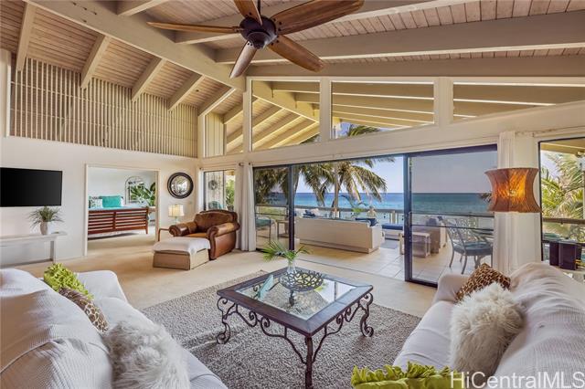 Isn’t it time you made the move you’ve been dreaming of? This spacious OCEANFRONT home, located in the last beach loop on the scenic and sunny west coast of Oahu, sits on over ¼ acre in the coveted Makau Beach Loop, a neighborhood right next to world-famous Makaha Beach. Often used for meditative retreats, the home has vaulted ceilings, two generous primary suites, and a massive wrap-around lanai with front-row seats to year-round sunsets, whales, and dolphins. The 2,069 sq ft upstairs living space also includes a grand kitchen and living area, all with stunning ocean views. Downstairs, large picture windows and sliding doors open to a generous ocean-facing patio—perfect for parties, BBQs, or hammock time. A natural reef, state-approved seawall, gated rock wall, and lush landscaping offer comfort and solitude. This is a legacy home—ideal for your vacation getaway, long-term investment, or full-time residence for years to come. Priced to accommodate renovations or personal touches to suit your taste and lifestyle.
