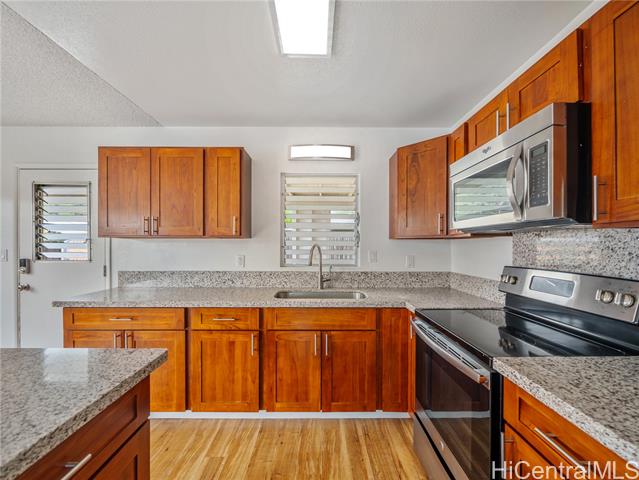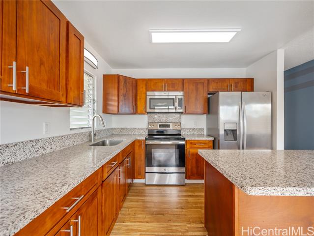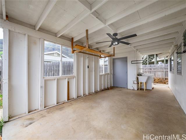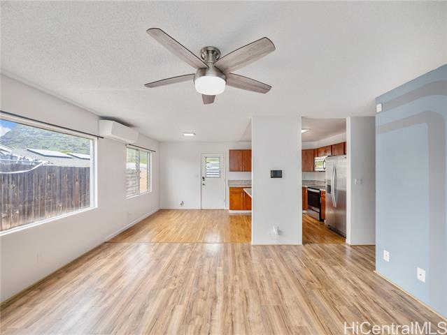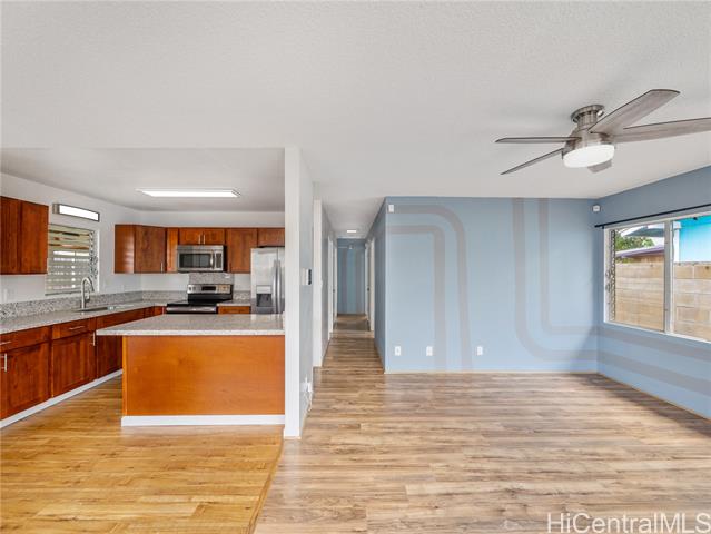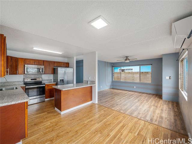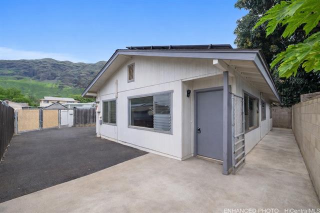 Surfs Up! Don’t miss this outstanding opportunity to assume an exceptional 3.25% VA loan ($2,706.66/mo incl. PITI) with an approximate remaining balance of $506,746.35. This move-in-ready, single-level Waianae gem delivers comfort, convenience, and value with 3 bedrooms, 1.5 baths, a 1-car carport, and an oversized driveway offering ample parking for multiple vehicles, guests, or your weekend surf gear. The fully fenced, low-maintenance yard provides space for pets, keiki, gatherings, and privacy while keeping upkeep simple. Located just minutes from some of Hawai‘i’s best surf breaks, this home is perfect for those who love sun, waves, and coastal living. Upgrades include 21 owned PV panels (paid at closing) and 4 split A/C units for efficient, year-round cooling. The kitchen features quartz counters, wood cabinets, and stainless steel appliances, complemented by LVP flooring in main areas and carpet in two bedrooms for added comfort. A true standout value—don’t sleep on this one!