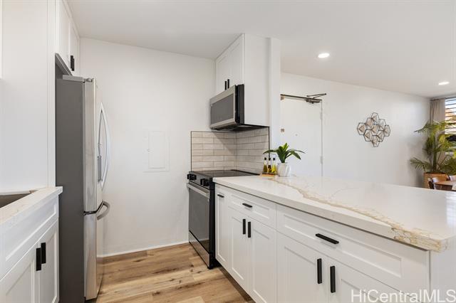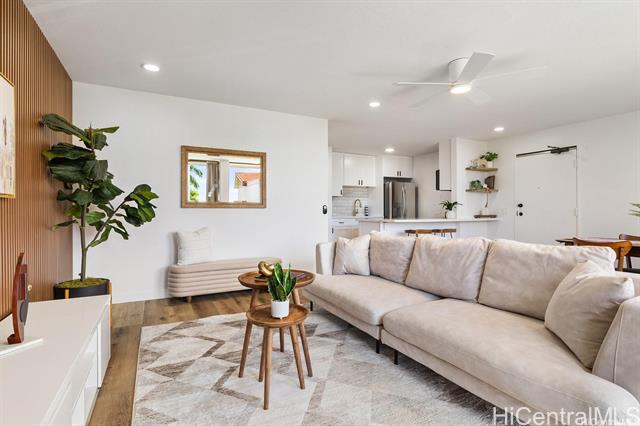Don't miss this fully renovated, turn-key 3-bedroom, 1-bath townhome, just 5 minutes from the world-famous Makaha Beach! Three-bedroom units are rarely available—especially in move-in-ready condition. This spacious home features luxury vinyl plank flooring throughout, quartz countertops in the kitchen and bathroom, brand-new appliances, and abundant cabinet and storage space—perfect for full-time living or a vacation retreat. Enjoy the convenience of TWO assigned parking stalls and a full range of resort-style amenities, including multiple swimming pools, spas, children’s wading pools, a self-serve car wash station, tennis/pickleball courts, and a basketball court. Situated in a lush, beautifully landscaped gated community with 24/7 security patrol, Makaha Valley Plantation offers peace of mind and the true island lifestyle. Schedule your private showing today—this rare opportunity won’t last!