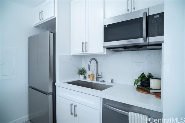 Welcome to your private oasis at Makaha Valley Plantation, Unit 106B – a fully remodeled gem that blends modern luxury with serene tropical living. Step inside to discover an open, light-filled layout featuring brand-new vinyl plank flooring throughout the main living areas and sleek tile in the kitchen and bath for effortless style and maintenance. The heart of this home is the stunning modern kitchen, boasting all-new shaker-style cabinetry, gleaming quartz countertops, and stainless steel appliances – perfect for everything from quick mornings to entertaining guests. Both bedrooms offer generous space and natural light, while the refreshed bathroom includes contemporary fixtures and a spa-like feel. Enjoy resort-style amenities just steps away: two sparkling pools, BBQ areas, tennis courts, and lush walking paths surrounded by swaying palms and mountain views. Gated security, assigned parking, and low maintenance fees make island living a breeze. Just minutes from pristine Makaha Beach and world-class golf, this move-in-ready condo is your gateway to West Oahu’s laid-back paradise. Don’t miss this rare turnkey opportunity!