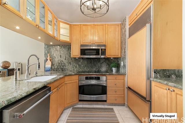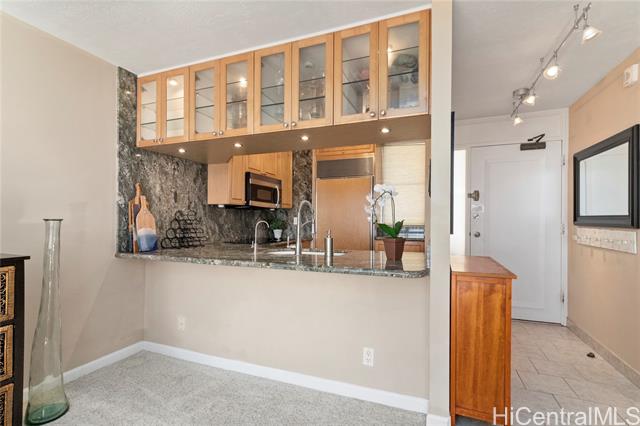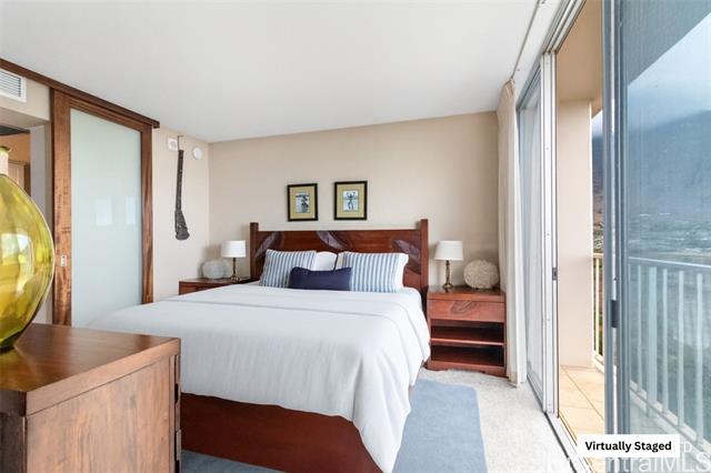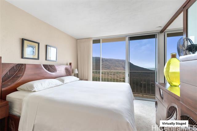 Welcome home to this luxurious high-end condo featuring breath-taking mountain and ocean view! Unit boasts stunning granite countertops & stainless steel appliances complementing an amazing kitchen that includes a sub-zero refrigerator. Popcorn ceiling & Soffits removed allowing cabinets to reach to the ceiling. Bathroom door was removed & replaced w/a 36-in. pocket door, & one dressing room closet was removed & replaced w/built-in shelving/wall unit that includes a pull-down bed. Original Shoji door replaced w/elegant solid mahogany & fogged glass, & an extra Shoji door added in bedroom for privacy. FURNITURE INCLUDED too! Just bring your suitcase and move in! Amenities include 24 hour security, trash chutes, heated pool and barbeque area set within a lush & tropical landscaped gated complex. Maintenance fee includes all utilities, electric, water and air conditioning. Located directly on the bus line, minutes from the world-famous Makaha Beach and next door to Makaha Valley Country Club. Maintenance fee includes: AC Central, Cable TV, Electricity, Hot Water, Other Common Expenses, Sewer, Water. FEE SIMPLE. 30-day vacation rentals permitted. A MUST SEE!!!
