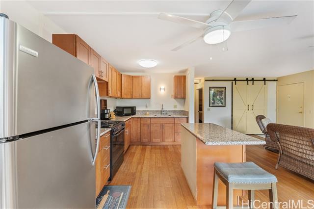 Experience elevated island living in this beautifully renovated "B" unit at Makaha Valley Plantation. Thoughtfully redesigned with modern finishes and a clean, refined aesthetic, this residence offers a seamless blend of island comfort and style within a gated, resort-style community. Natural light fills the open living space, creating an inviting atmosphere that flows effortlessly to a private Juliet lanai perfect for enjoying the lush surroundings. The updated kitchen and interior finishes provide a move-in ready experience designed for both everyday living and a peaceful retreat. Set within a secure, amenity-rich community featuring two pool areas, tennis courts, and meticulously maintained grounds, this residence offers both convenience and a sense of escape. Just moments from iconic beaches and scenic outdoor experiences, this is where privacy, simplicity, and island lifestyle align.