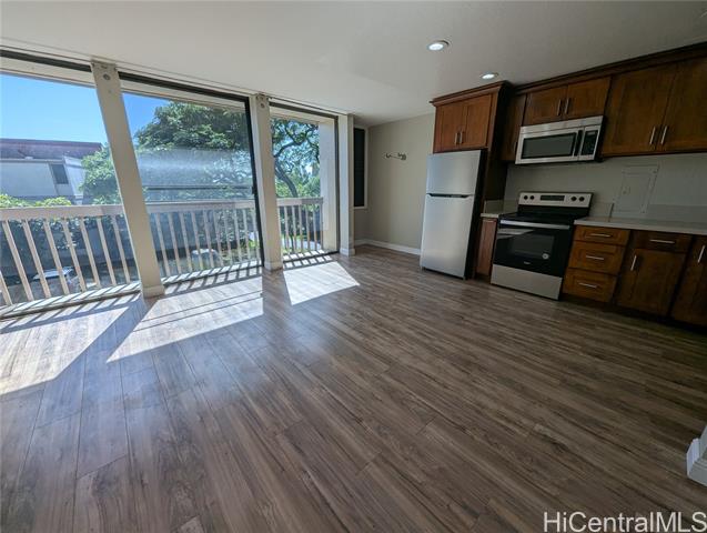 Welcome to Makaha Valley Plantation! Tucked away in beautiful Makaha Valley, you can get away from all the hustle and bustle of town in this 2 bedroom, 1 bath, second floor, end unit. It features laminate and ceramic tile flooring w/wall to wall carpet in the bedrooms, upgraded cherry colored kitchen and bath cabinets, and stainless steel appliances. Enjoy the resort like amenities of this gated community, with 2 swimming pools, tennis and basketball courts. Located close to the gate and management office, getting in and out of the complex is a breeze. Property was built prior to 1978 and lead based paint potentially exists. This property may qualify for Seller Financing (Vendee).