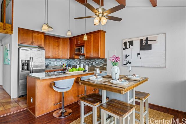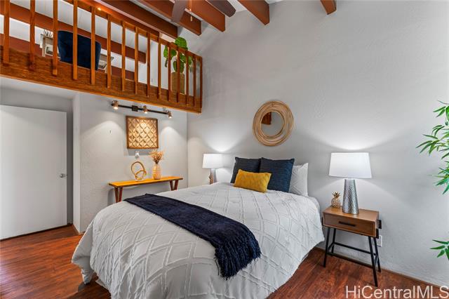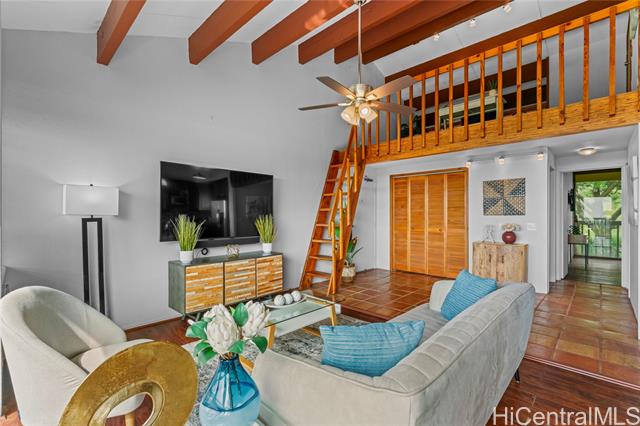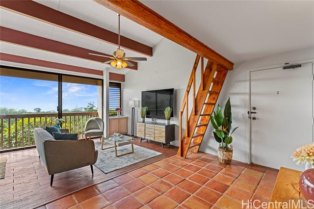Nestled in the secure, gated Makaha Valley Plantation, this unique unit offers resort-style living surrounded by breathtaking natural beauty. Enjoy access to two swimming pools, BBQ areas, tennis courts, onsite laundry, 24-hour security, and beautifully manicured grounds. The unit features its own stairwell, an open loft ideal for an additional sleeping area or office space, and extra storage. Take in ocean views from the main living area and enjoy an additional balcony off the primary bedroom - rare features that make this residence truly one of a kind. Ideally located near world-class beaches, scenic hiking trails, and golf, this home offers the perfect blend of comfort, privacy, and island living.
