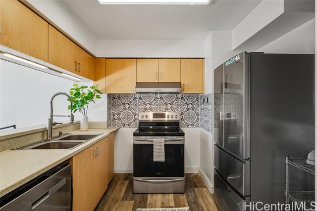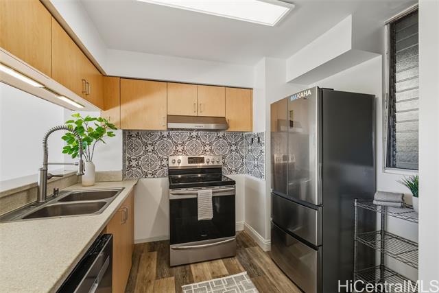 Welcome to Makaha Valley Towers #434, where comfort, lifestyle, and value meet. This well-kept residence offers the ideal opportunity for buyers seeking a home they can enjoy immediately while adding personal upgrades over time. Step into a bright and functional layout, featuring vinyl plank flooring and stainless steel kitchen appliances, creating a nice foundation for your vision. It's desirable lower-level location provides peace of mind and convenience while still capturing the iconic mountain and ocean views the Towers are known for! Here, you can enjoy the scenery without the high-floor exposure. Nestled within a secure, gated community, Makaha Valley Towers offers resort-style amenities including a heated swimming pool, BBQ areas, beautifully manicured grounds, 24-hour security, onsite laundry, and ample guest parking. Experience a lifestyle surrounded by natural beauty, world-class beaches, hiking, and golf just moments away. Whether you're seeking a full-time residence, weekend retreat, or investment opportunity, this unit delivers comfort today and potential for tomorrow. Makaha Valley Towers #434, live, relax, and make it your own.