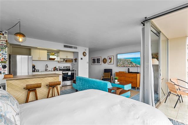 This bright, open-floorplan studio offers sweeping Makaha Valley, mountain, and panoramic ocean views with cool, refreshing trade winds flowing through. Unwind with golden sunsets and enjoy the feeling of a private island retreat every day. Your maintenance fee covers central AC, electricity, hot water, sewer, cable TV, parking, security, and grounds, making this an incredibly easy and cost-efficient way to live in paradise. Amenities include a pool, BBQ area, guest parking, and community laundry. Minutes from Makaha Beach, Ka'ena Point, Yokohama Bay, Ko'Olina Lagoons, Electric Beach and local favorites like Beach House 604, Lanterns, 808Puffs, Monkeypod Kitchen, and Roy's Ko'Olina this home puts you close to surfing, hiking, snorkeling, and some of the most beautiful beaches on Oahu plus some of the best kept food secrets the island has to offer. Enjoy island living, authentically.
