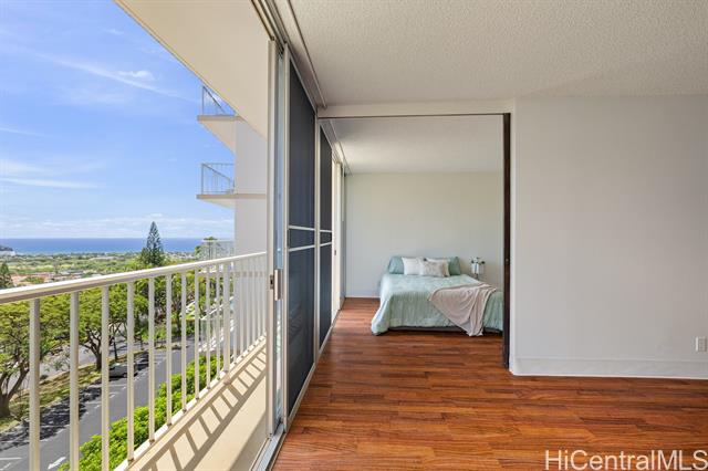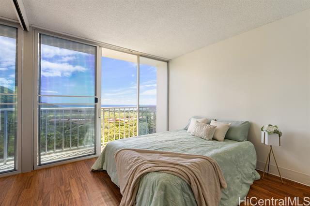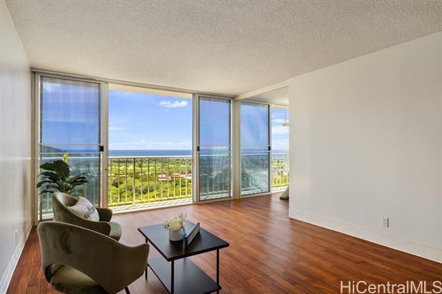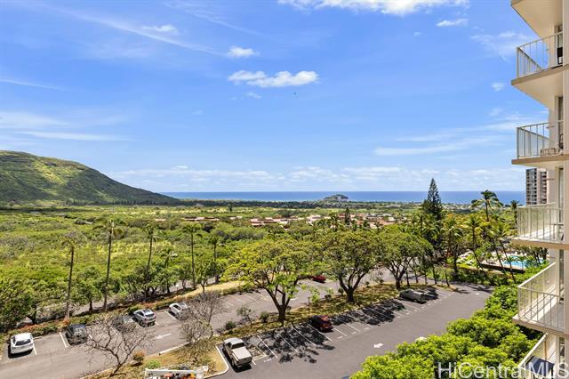 Enjoy sweeping panoramic views of the Pacific Ocean and Waianae Mountain Range from this beautifully upgraded 1-bedroom residence in Makaha Valley Towers. This move-in ready unit features a thoughtfully redesigned open-concept kitchen, creating a bright and spacious feel while maximizing the stunning views, perfect while cooking, dining, and entertaining. The kitchen is appointed with granite countertops, new appliances, and convenient counter seating for casual dining. Additional upgrades include waterproof vinyl flooring in the main living areas, and a fully renovated bathroom featuring a modern walk-in shower and bidet. Designed with accessibility in mind, the unit is ADA accessible, offering added comfort and ease of living. Whether you're seeking an affordable primary residence with incredible views, a vacation spot away from the hustle and bustle of Honolulu and Waikiki, or an investment opportunity, this unit offers exceptional value in the wonderful setting of Makaha Valley.