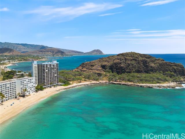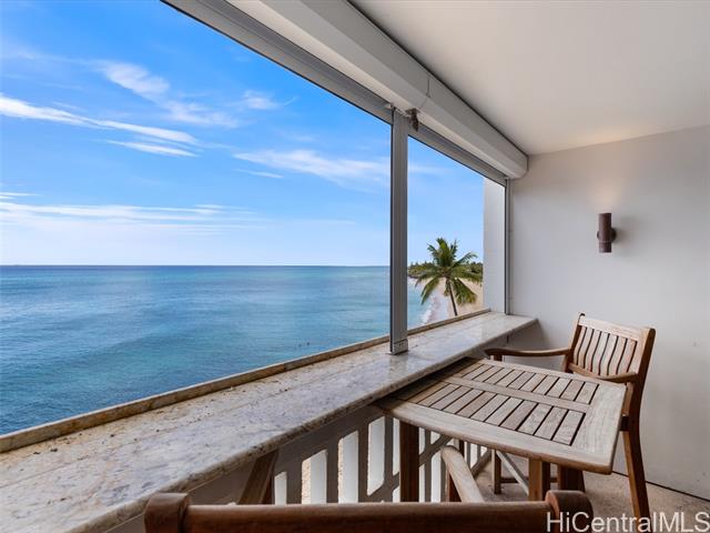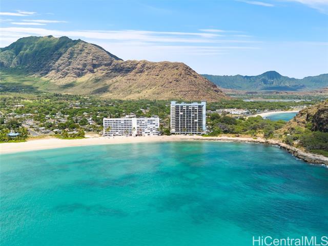 Amazing opportunity to live directly above the ocean and beach. This preferred tower and unit is located on the 5th floor which offers sweeping unobstructed views of the ocean, sunset and mountain range. Once you enter the gated entrance you feel you are on vacation immediately. From the ground level you have access to one of the nicest beaches and reefs on the island literally out your door. The front door faces the Waianae mountain range and the primary bedroom with private lanai the ocean. Sleep at night listening to the calm waves cascading over the sandy beach. The unit has roll down hurricane shutters and a freshly reglazed tub. The unit is updated and move in ready. The building just had spalling work completed and the exterior was painted. Do not hesitate because this is truly island living at its best.