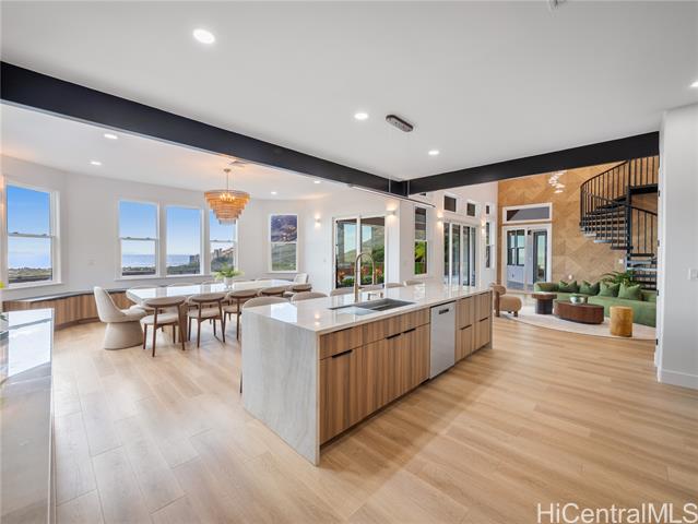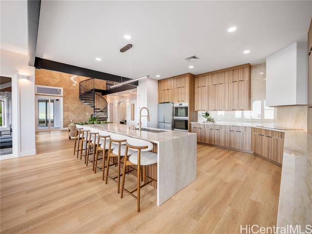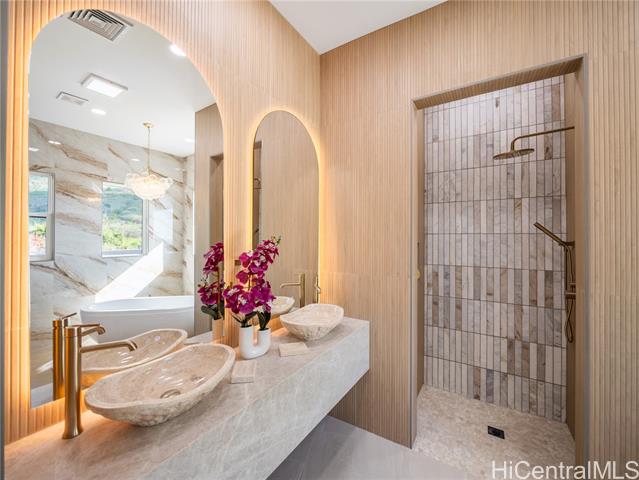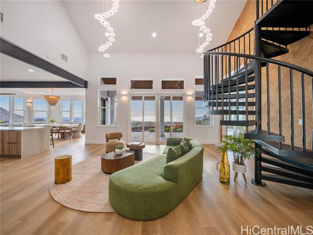 Nestled within the prestigious gated community of Maunaolu Estates, this exceptional island retreat offers a rare blend of modern elegance and natural Hawaiian beauty. Spanning over one acre of lush, landscaped grounds, this single level 4-bedroom, 4-bathroom estate is designed for effortless indoor-outdoor living and grand entertaining. Inside, nearly 3,500 sq. ft. of refined space showcases high ceilings, oversized windows, and sliding doors that fill the home with natural light and frame breathtaking mountain and ocean views. The chef’s kitchen features new Café appliances, custom cabinetry, and a handcrafted dining table for twelve — perfect for gatherings large or intimate. The primary suite offers a serene sanctuary with a spa-inspired bath, while a spiral staircase leads to a loft with wet bar and wine fridge — ideal for relaxing or entertaining. Outdoors, enjoy a custom waterfall, lush landscaping, and a resort-style pool with water slide and spa. The 900+ sq. ft. 3-car garage with double-sided doors blends function and luxury — embodying the ultimate Hawai‘i lifestyle.