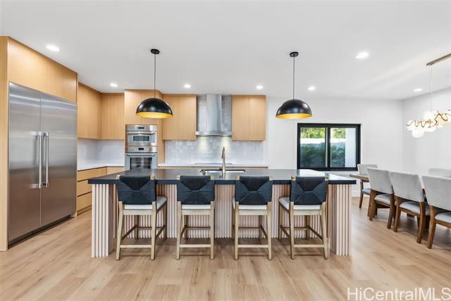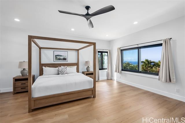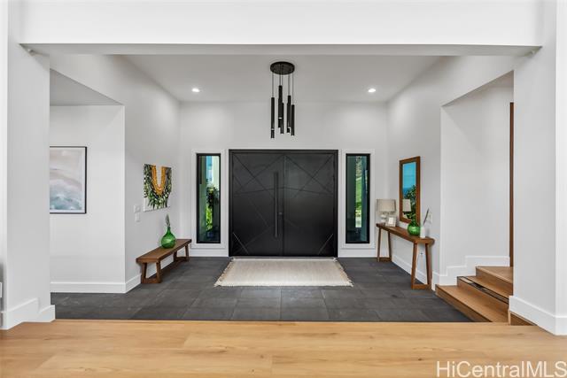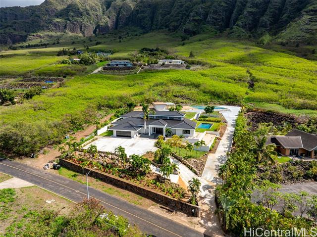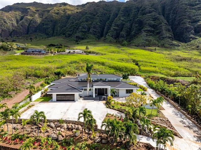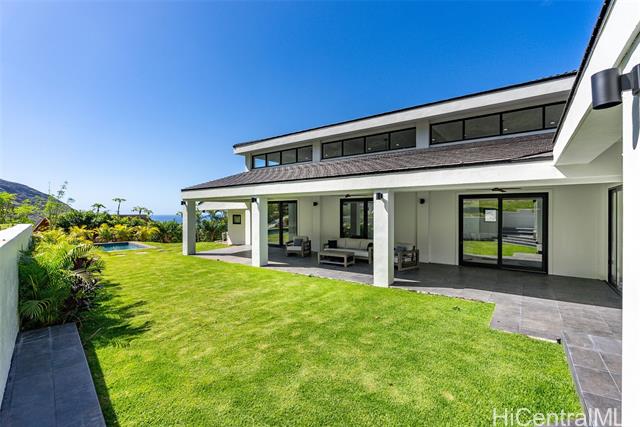 Exceptional value in gated Mauna‘Olu Estates. Set on over 2 acres, this modern retreat offers ocean and mountain views, privacy, and indoor-outdoor living. Open-concept design with high ceilings and natural light. Chef’s kitchen features premium Thermador appliances, custom cabinetry, walk-in pantry, and large island. Primary suite with spa-like bath. Resort-style backyard with pool, lush landscaping, covered lanai, and two pickleball courts.