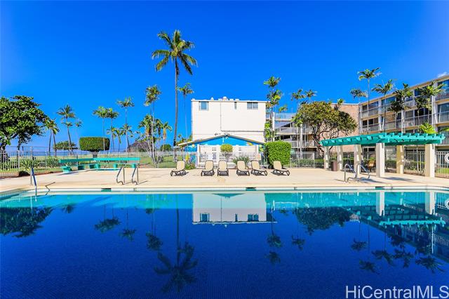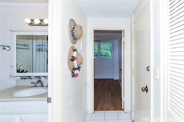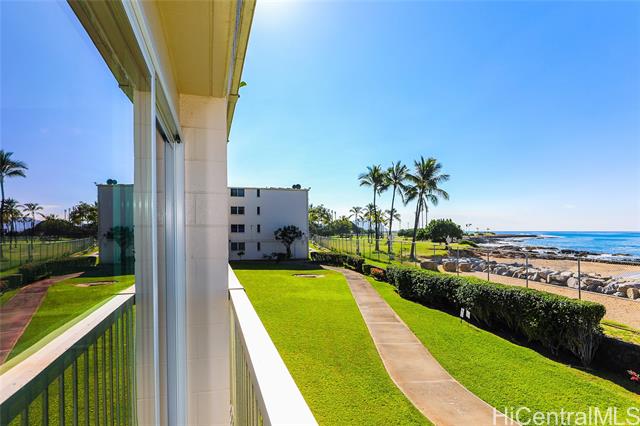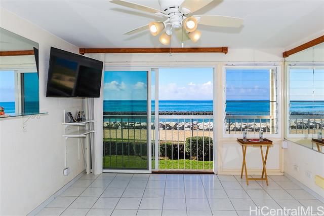 Experience true oceanfront living in this upgraded 1-bedroom, 1-bath second-floor Makaha Surfside residence with unobstructed ocean views. Thoughtfully renovated features include a smooth, refinished ceiling (no popcorn in living areas), tankless water heater, and a remodeled bath with a step-in shower, upgraded vanity, and additional storage closet. The bedroom is enhanced with hardwood floors, crown molding and smooth walls, while ceiling fans in both the living room and bedroom add comfort. Additional upgrades include upgraded interior doors, kitchen under-cabinet lighting, a convenient spice closet, easy-open sliding glass doors and jalousie windows. Makaha Surfside offers 24/7 security, an oceanfront pavilion with BBQ and picnic areas, two swimming pools, fitness room, sauna, elevators, and direct access to sheltered ocean inlets—perfect for enjoying the water year-round.
