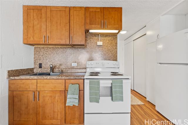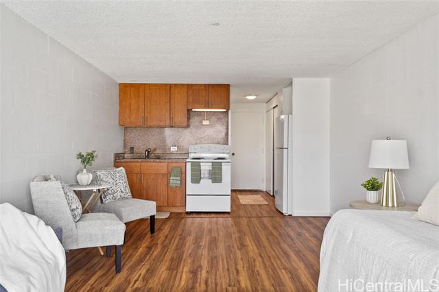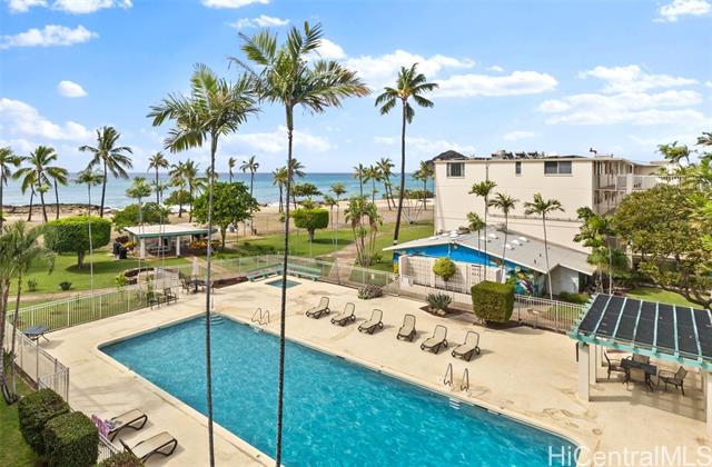 Welcome to unit C415, a beautifully renovated studio at the Makaha Surfside with ocean views! Wake up to the serene sound and distant view of the Pacific Ocean while overlooking the sparkling pool. Inside, you'll find a bright, clean unit featuring luxury Koa vinyl plank flooring throughout, a fresh coat of interior paint, and thoughtful bathroom upgrades, including a refinished bathtub and a brand-new vanity, making this condo move-in-ready. The Makaha Surfside offers exceptional value with 24-hour security, two swimming pools, direct beach access, BBQ areas, a meeting room, and it is located directly on the bus line, making daily travels a breeze. Don't miss your chance to own this coastal gem. Schedule your showing today!