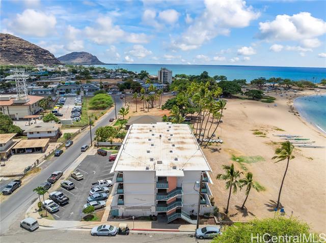 Welcome to your perfect beachside retreat! This beautifully remodeled studio apartment is located right on Pokai Bay Beach. It's the ideal spot for a weekend getaway, offering immediate access to activities like swimming, snorkeling, fishing and kayaking. The unit is completely ready for you to move in or begin renting it out. You'll be just steps away from shopping and dining, with the convenience of a bus line right outside. Step onto your private lanai and take in the serene mountain views.